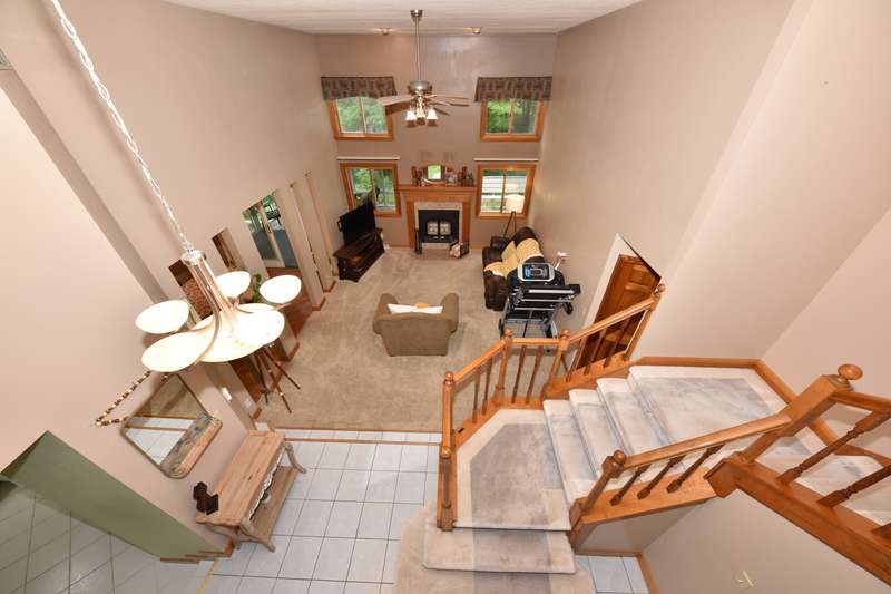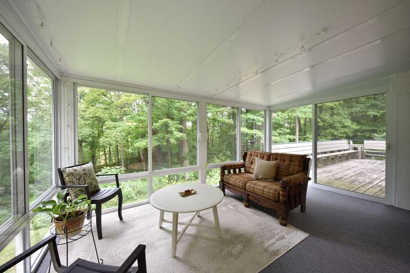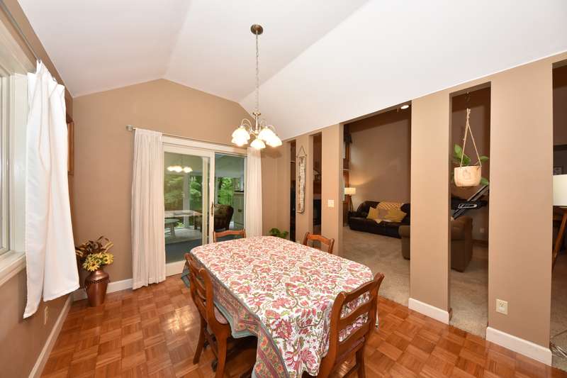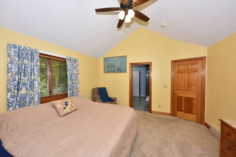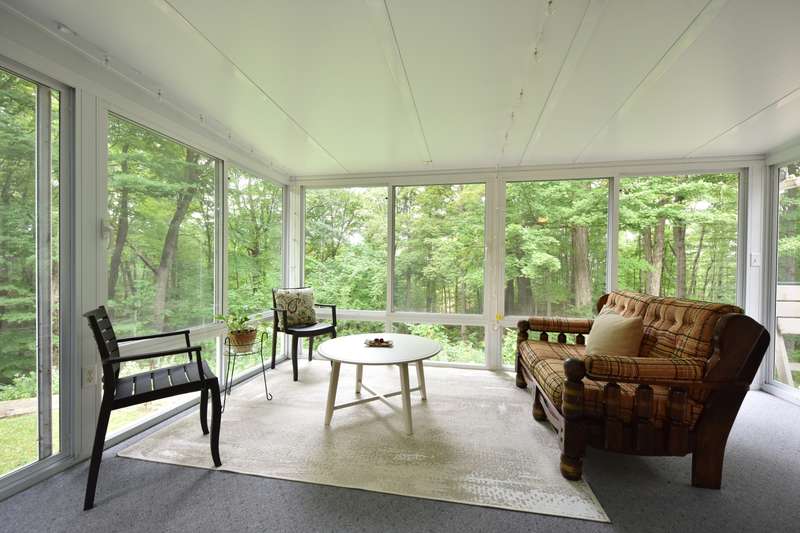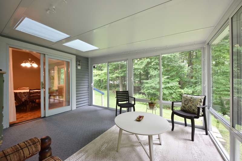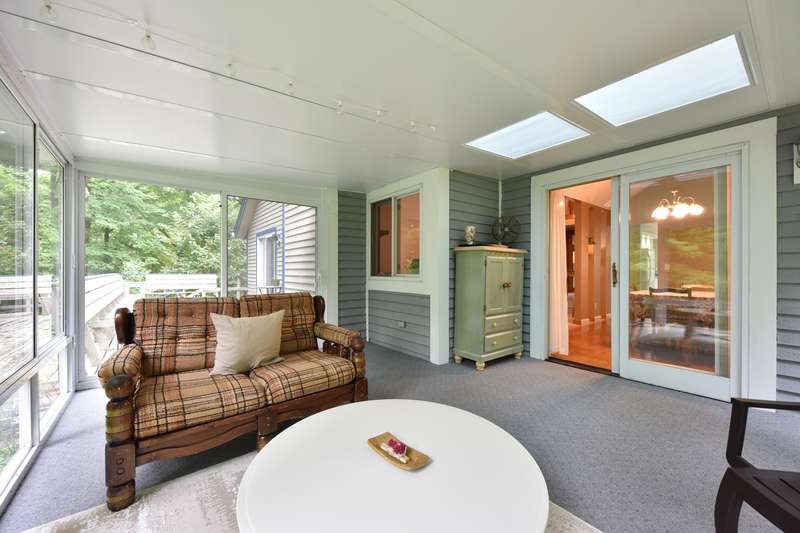 This beautifully maintained four-bedroom, three and a half-bathroom home sits on a private three-acre wooded lot. The main-level master suite offers easy living, while the living area boasts vaulted ceilings that add spaciousness and light. A bright four-season room, with large windows showcasing the serene wooded views, opens to a large deck, perfect for outdoor relaxation or entertaining. The home features a spacious kitchen, ideal for meal prep and entertaining, and expansive living and dining areas that flow effortlessly for both family time and gatherings. With the beauty of nature surrounding you and the convenience of modern amenities, this property is the perfect blend of privacy and comfort.