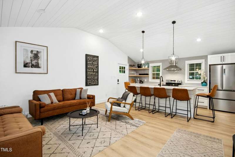 Over $100K in 2023 updates! This fully renovated home is ideal for first-time buyers, Airbnb investors, mid-term rental investors, or anyone looking to downsize. Option to purchase fully furnished makes it truly move-in or rental ready.Features include a custom kitchen with quartz countertops, oversized island, soft-close cabinets, stainless appliances, and hidden microwave. Wide-plank LVP floors, vaulted and smooth ceilings, 6'' baseboards, and updated lighting throughout. Both bathrooms are fully remodeled with tiled showers (to the ceiling), double vanity in primary, and a glass shower door.Major updates: new HVAC, water heater, vapor barrier, and paint. Includes washer, dryer, refrigerator?all furnishings can convey with acceptable offer. Private backyard completes the package.Less than 2 miles to Downtown Raleigh, Wake Med Hospital, NC Natural Science Museum, and I-40. Less than 15 minutes to Red Hat Amphitheater, NC State University, and North Hills. Turnkey, stylish, and low-maintenance?this home checks all the boxes!
