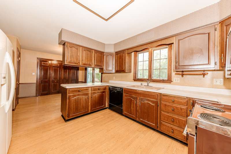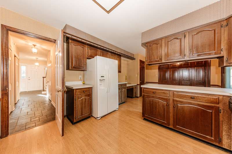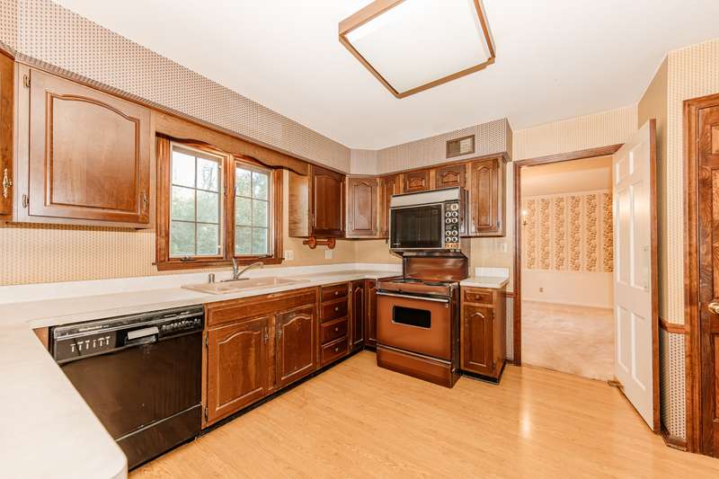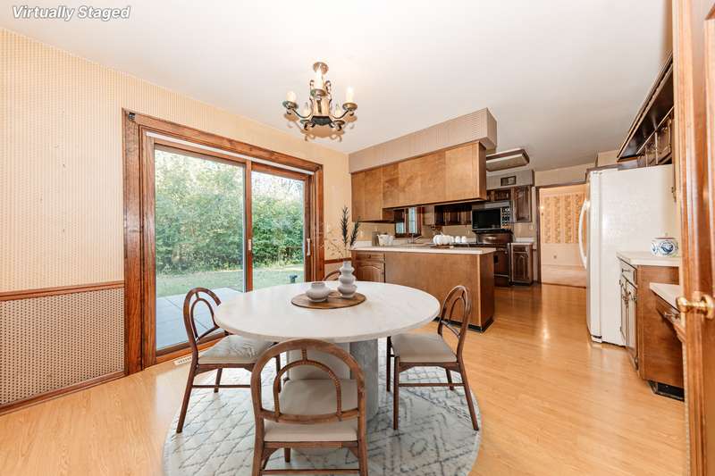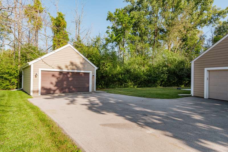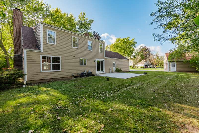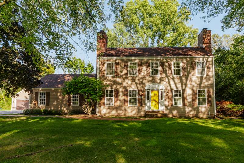 Discover the potential in this spacious 4-bedroom Salt Box Colonial, tucked away on a quiet cul-de-sac with convenient access to Hwy 43. This home offers generous room sizes and a thoughtful floor plan, featuring both a formal living room and a cozy family room-each with its own fireplace. A formal dining room, eat-in kitchen, and main floor laundry add to the home's functionality. Upstairs, you'll find four bedrooms and two full baths, including a primary suite with its own private bath. The unfinished basement provides room for storage or future finishing. Car enthusiasts and hobbyists will love the rare combination of a 2-car attached garage plus an additional 2-car detached garage-perfect for extra vehicles, tools, or recreational toys. Recent updates include a newer roof, siding, central air and two furnaces for zoned heating and 1 yr home warranty. While the home retains much of its original 1973 dcor, it presents an excellent opportunity for buyers to bring their design vision and create a fresh, modern space.