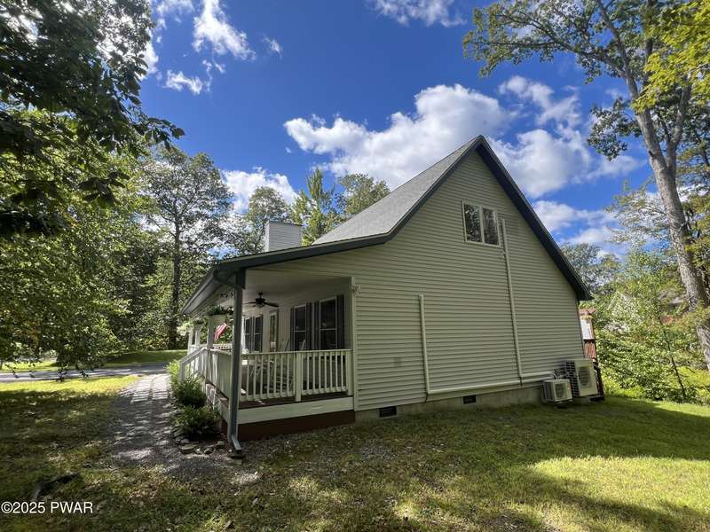 Location and Turn key Immaculate condition!!! Just bring your toothbrush and start enjoying the good life that Hemlock Farms Community as to offer. Located in the center of the community close to many amenities this home on a level corner lot across from the Hemlock Trail Green space offers both convenience and ultimate in privacy. With open great room for entertaining, a kitchen with loads of counter space adding a 9 month room and a large private deck you will enjoy spending time with guests. The laundry room off of garage entrance as well as an office or studio area is perfect for your hobbies. The large primary bedroom includes ensuite bath and walk in closets. Upstairs are 2 nice size guests rooms, full bath and loft for relaxing. Now add a 2 car garage and paved driveway as well as the welcoming covered front porch area for rocking away at the end of the day. Seller says for the right price they will leave everything you see including furnishings, linens, pots, pans dishes and many other gadgets. Feel free to open all of the cabinets and look at the treasures that can be yours.