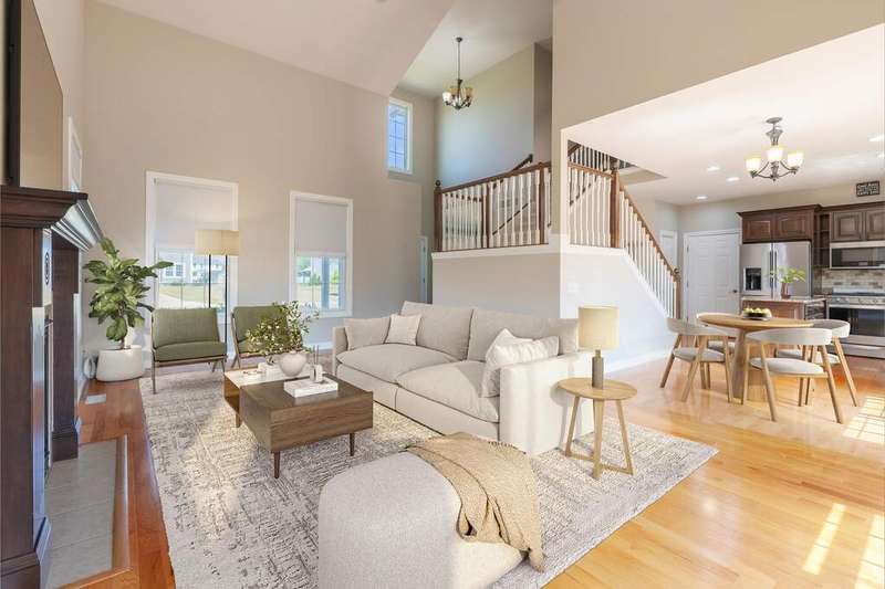 Welcome to Wyndstone Estates! This beautifully updated 4-bed, 3.5-bath home is full of comfort and charm. The spacious primary suite is your private retreat, featuring 3 closets and a relaxing jacuzzi tub. Enjoy soaring vaulted ceilings, wood floors, fresh paint, and new carpet throughout. The kitchen is perfect for gathering, with granite counters and stainless steel appliances-including washer & dryer. A fully finished basement adds a cozy family room, bedroom, and full bath-great for guests or movie nights. Convenient upstairs laundry makes everyday life easier. Step outside to a large fenced yard with sprinklers, ideal for play, pets, or peaceful evenings. Located just a short walk to schools and sports fields, this home is where memories are made.