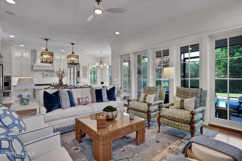 This custom built all brick Landfall home on a quiet cul-de-sac has just undergone a magnificent $500,000 complete remodel, including entirely new kitchen, new bathrooms, new upper and lower laundry rooms, and landscaping. Thoughtful design features are found throughout this home and are immediately appreciated at every turn. A covered front porch and graceful arched mahogany French doors create a memorable entrance to this comfortable home with a paneled study and formal dining room flanking a generous foyer with wrought iron railings. Hardwood floors, custom built-ins and detailed crown moldings are found throughout the first floor. The kitchen has been completely updated with all new cabinetry, Vikings stainless appliances, including a six burner gas cooktop, side-by-side refrigerator freezer, a huge quartz center Island for elegant entertaining all overlooking the family room with fireplace, a sunny breakfast nook, a screened porch and private backyard with pool and fire pit. The first floor master features hardwood flooring and a brand new bath with soaking tub and a frameless glass shower, and a large walk-in closet with custom built-ins. The second floor features front and rear stairs that provide access to four bedrooms, three bathrooms and an upstairs den. Additionally the second floor includes an upstairs laundry room and large floored walk-in attic. This home is literally move-in ready for the lucky owner who appreciates attention to detail. Enjoy this central Landfall location with easy access to the wooded conservation area walking trails and the mile long paved trail around scenic Landfall Lake.When only the best will do!