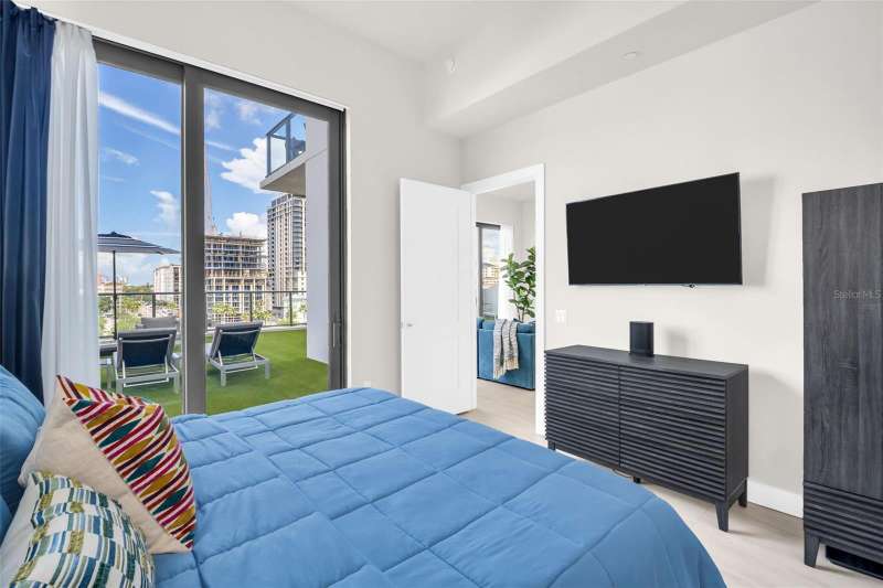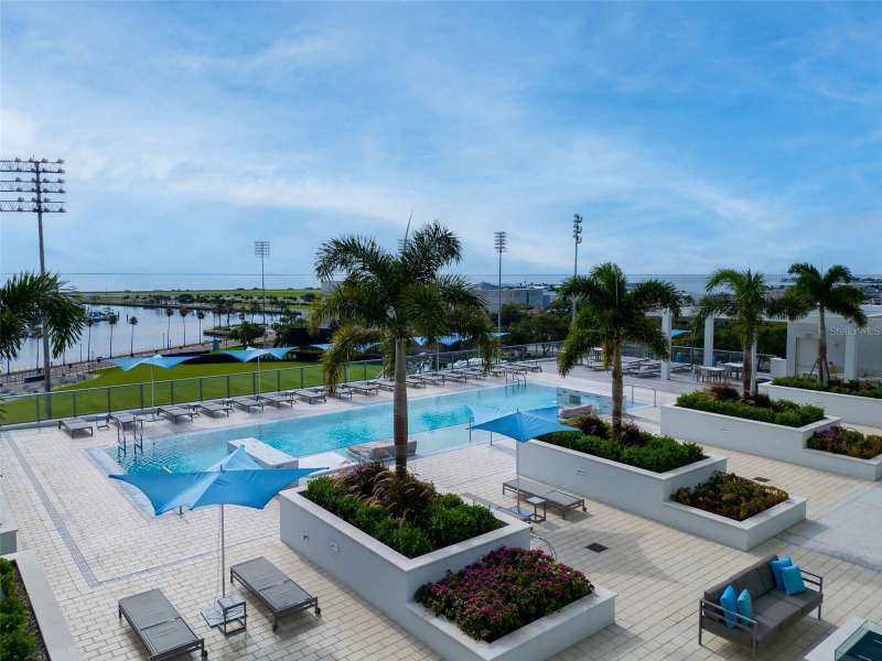 Exceptional Indoor-Outdoor Living at Saltaire | Rarely Available Terrace Residence Experience the pinnacle of luxury living in this rarely available 2-bedroom + den, 2.5-bath residence at Saltaire, where refined interiors blend seamlessly with one of the most impressive outdoor living spaces in downtown St. Petersburg. Spanning 1,667 square feet and offered fully furnished (excluding artwork), this home is one of only three residences located directly on the amenity deck, placing world-class resort-style features just steps from your door. Inside, you'll find 12-foot ceilings, elegant porcelain tile flooring, lighting, and window treatments, creating a sense of modern sophistication throughout. Both bedrooms include built-in headboards and walk-in closets, while the spa-inspired bathrooms offer a serene retreat. A well-appointed laundry room with additional cabinetry adding everyday functionality. The true centerpiece of this home is its expansive 1,158-square-foot private terrace, a rare urban sanctuary designed for both entertaining and relaxation. This outdoor space features lush Astroturf, a fully equipped outdoor kitchen with grill, a hose for easy upkeep, and high-end outdoor furnishings included with the sale. Whether hosting guests or enjoying a quiet evening under the stars, this terrace offers a lifestyle unlike any other in the city. Additional features include two (2) parking spaces and a climate-controlled storage unit for added convenience. As a resident of Saltaire, enjoy access to concierge service, a state-of-the-art fitness center, resort-style pool, and a spectacular amenities terrace with sweeping views of Tampa Bay, marina’s and St Pete Pier. Perfectly positioned in the heart of downtown St. Petersburg, this residence offers immediate access to award-winning dining, cultural attractions, waterfront parks, and the vibrant marina district. strict.