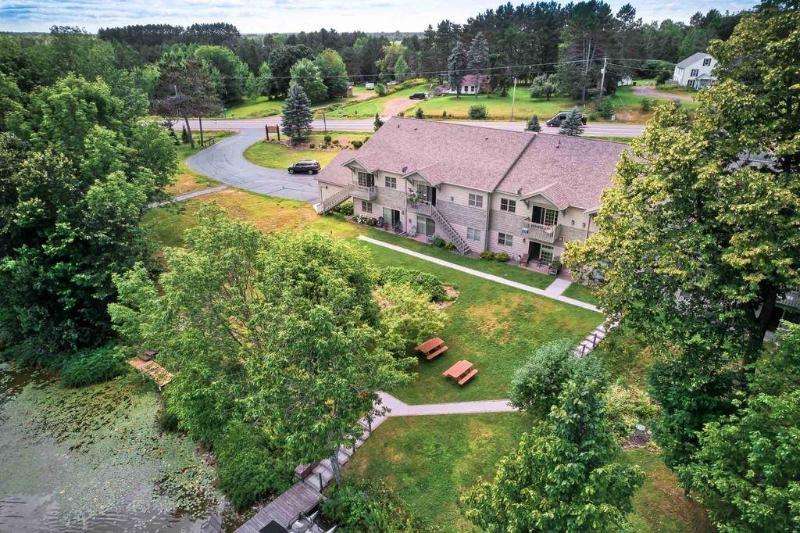 Fully furnished and move-in ready condominium located in Bass Lake Shores. Conveniently located between Eagle River and Rhinelander, this 2 bedroom, 2 bath upper level unit overlooks Bass Lake and the beautifully landscaped lakeside grounds. The condo features an open concept design with a gas fireplace, spacious bedrooms including a primary suite, laundry area and a private deck. Also included is a 1-car detached garage along with additional storage space in the shared basement. Schedule your appointment today to see this meticulously maintained unit.