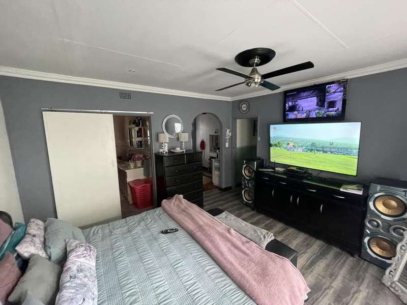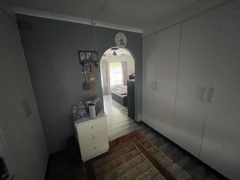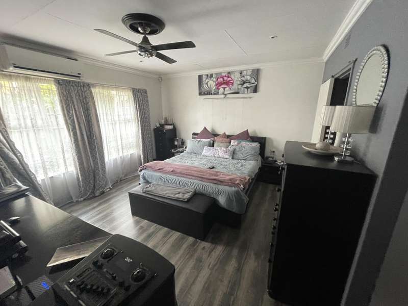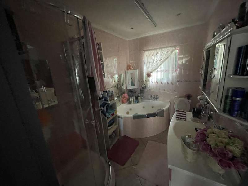 3 spacious rooms all with BIC 3 bathrooms one bathroom is the ensuite 2x open plan lounges, with outside door Massive open plan kitchen with door to pool area Spacious study area Aircons all round house 2x Dinning rooms with door to outside area to lapa Lapa and bar area has jacuzzi built in 4 car garage and 3 car carport with camera system and alarm 2 x koi ponds with JOJO tanks outside 2x FLATS 1 bedroom 1 bathroom, lounge, kitchen, and own yard and garage on property Can generate a income of +/- R10k rent A 10KW Solar system You also have option of keeping current tenants or on OTP submission they will get notice to move