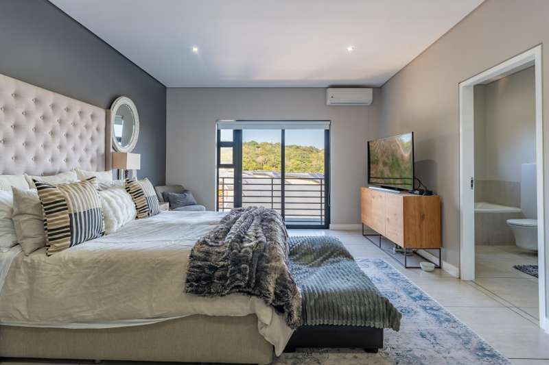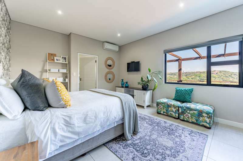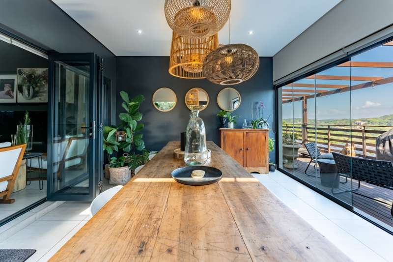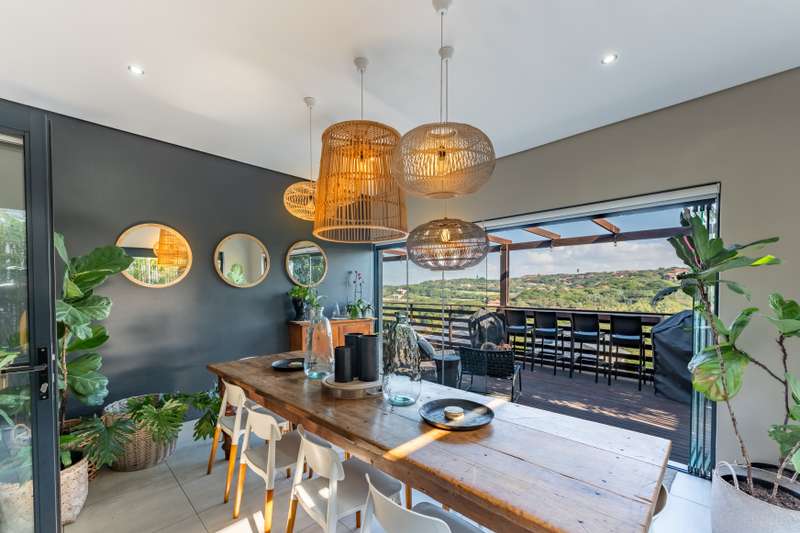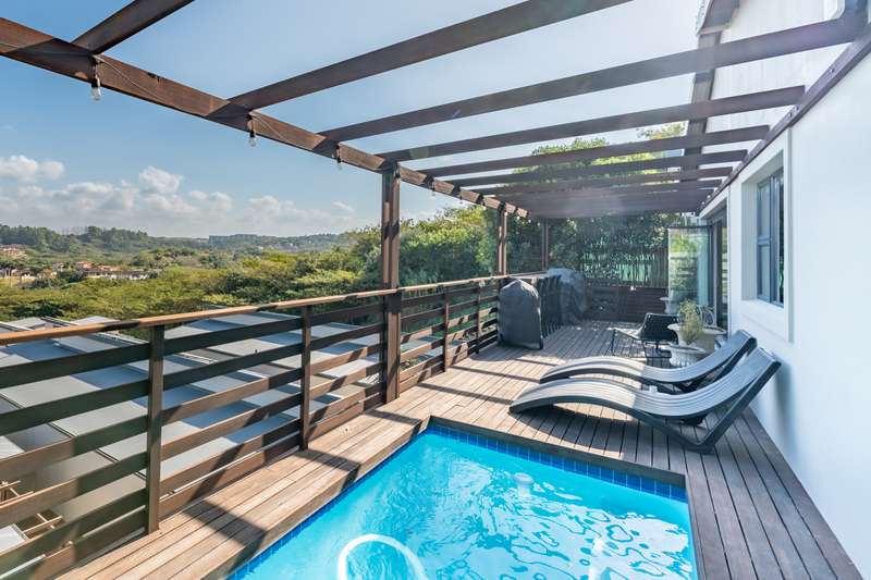 DUAL MANDATE - Immaculate and move-in ready, this beautifully designed 3-bedroom, 3-bathroom home is nestled within a secure and sought-after estate in Ballito Central. All three bedrooms are en suite, offering privacy and comfort for the entire family. The luxurious main bedroom, located upstairs, provides a tranquil retreat, while the second and third bedrooms are conveniently situated on the ground floor—ideal for guests or family members. A guest toilet adds extra convenience. The home features a seamless open-plan layout with a spacious lounge, dining area, and modern kitchen. The kitchen is a chef’s delight, boasting sleek countertops, a gas hob, and an eye-level oven. Step outside from the lounge onto an undercover patio, which flows effortlessly onto a stylish decked entertainment area. Enjoy the charm of a built-in bar counter and a delightful splash pool—perfect for relaxing or entertaining—while soaking in serene greenbelt views of the prestigious Zimbali Golf Course. This solar-powered home is the perfect blend of comfort, luxury, and lifestyle. Don’t miss the opportunity to make it yours!