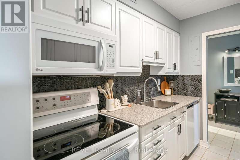 Cozy & Classy best describe this beautiful two bedroom unit! With updated kitchen, flooring and bathroom, you can simply move in and unpack. The primary bedroom is very roomy and has a fantastic walk-in closet with built-in organizer. The second bedroom is also bright and roomy and could easily double as a home office. The living room has tons of natural light and takes you out to the private terrace, with western exposure. The kitchen has lovely granite countertops, ceramic backsplash, newer appliances and plenty of cabinet space. Enjoy access to the outdoor heated pool, gym, & sauna. This building is situated in a quiet, north -end enclave, but is still very close to the Fairview Mall, churches, QEW access and bus routes. Let's Get You Home! (id:7434)