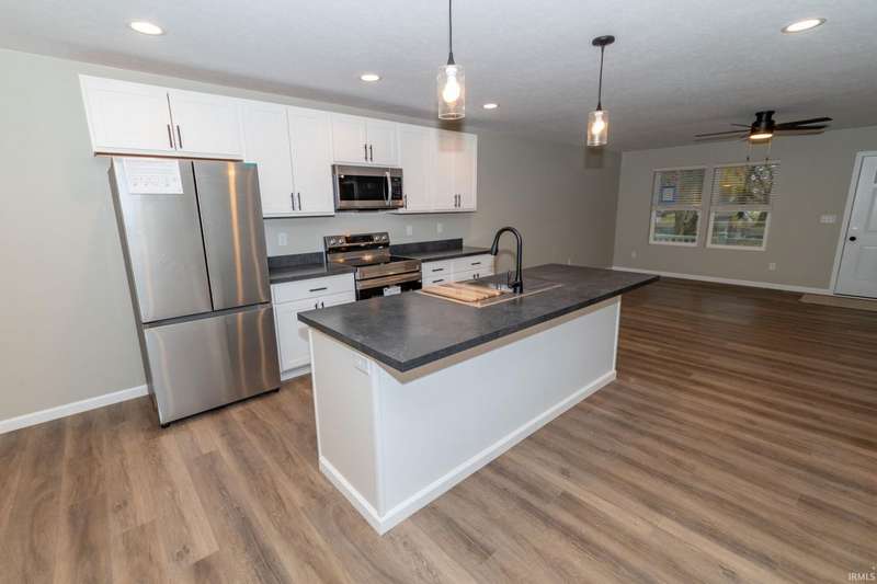 Newly built single story home w/3 bedrooms, 2 baths, 2 car garage-Open concept- Island kitchen- Stainless Steel Kitchen Appliances-Front & Rear porches-Barn style detached garage w/loft-Basement 3rd Bedroom w/egress window-Semi finished rec/family room in basement- City water& sewer- City sidewalk-Landscaped -Wonderful primary suite w/ walk-in shower & clothes closet-500 SF of of partially finished basement awaits your final completion-