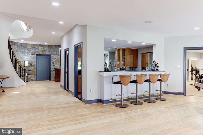 Commanding an incomparable vantage point above the Potomac River, this extraordinary stone estate by BOWA defines timeless sophistication and total privacy on more than three gated acres in McLean's most coveted enclave, moments from Washington, D.C. Beyond its stately approach and manicured grounds, the residence reveals over 16,000 square feet of refined interiors designed for both grand entertaining and serene daily living. A two-story great room with floor-to-ceiling windows frames sweeping river views, while French doors open to an expansive terrace that captures the tranquil beauty of the surroundings. The gourmet kitchen is a showpiece with professional-grade appliances, granite surfaces, a walk-in pantry with Sub-Zero refrigerator, and a hidden bar. The main level also offers dual offices, two powder rooms, elevator access, and a full laundry with pet bath-all under soaring ceilings that enhance light and volume. The main-level owner's suite is a private sanctuary with windows on three sides, dual dressing rooms, and a marble spa bath with jetted tub, steam shower, and private balcony overlooking the river. Upstairs, three guest suites each feature walk-in closets and elegant baths, two with French doors to balconies. The lower level is a destination in itself-featuring a lounge with stone fireplace, billiards area, wet bar, wine cellar, fitness room, and a stunning indoor pool with skylights and glass doors opening to extensive stone patios. Additional amenities include a private in-law or staff suite with full kitchen, a salon, guest suite, and generous storage. Outside, terraced gardens, pergolas, water features, and a gazebo with full outdoor kitchen create a breathtaking resort-style setting. With five-car garage parking, geothermal systems, and whole-house generator, this distinguished estate offers rare scale, craftsmanship, and uninterrupted Potomac River views.