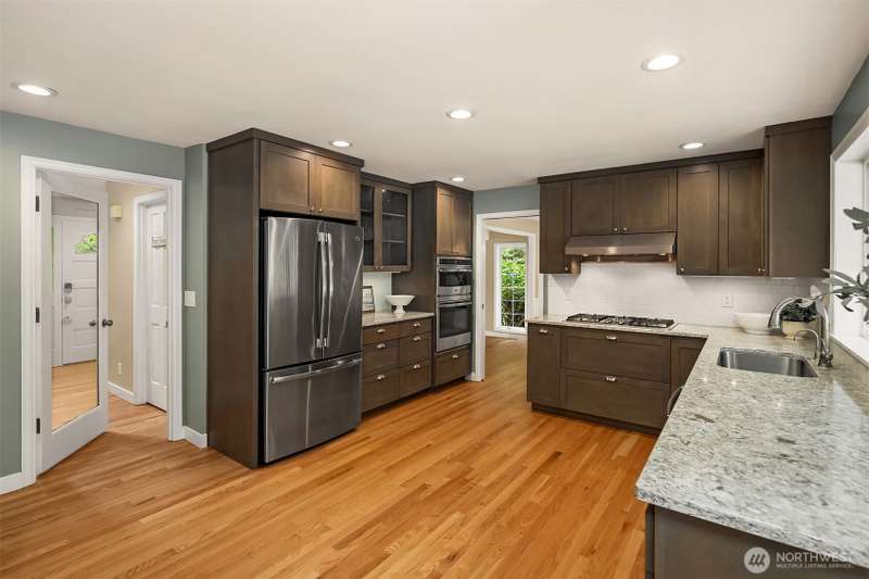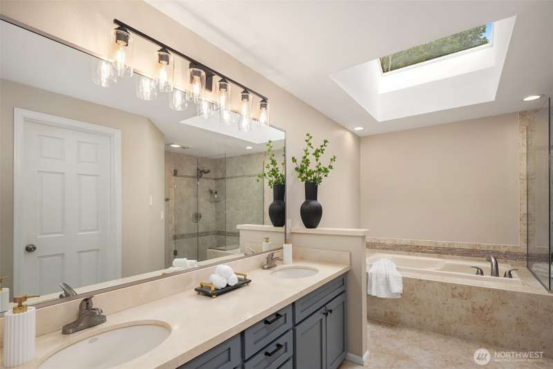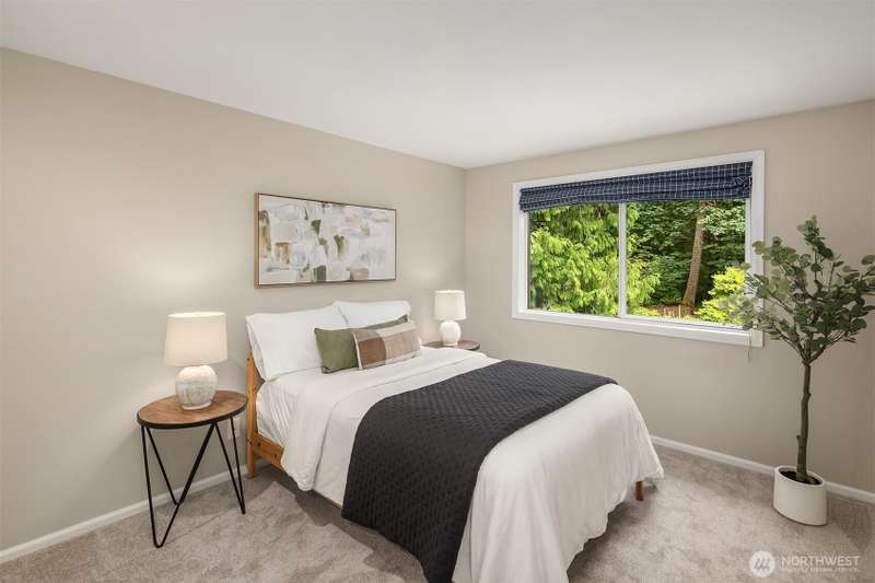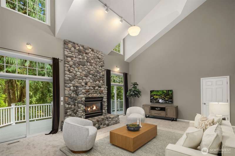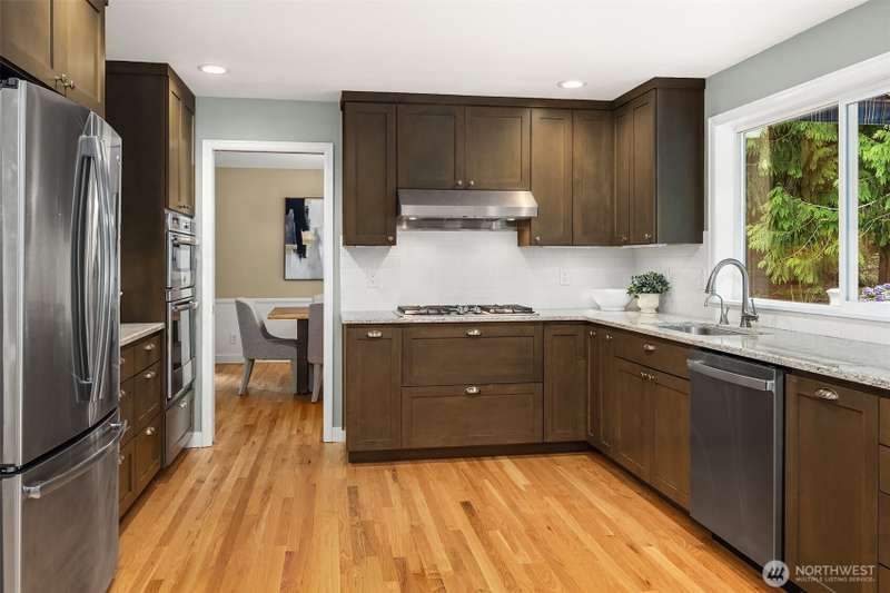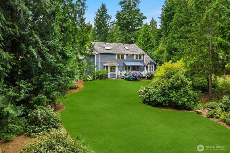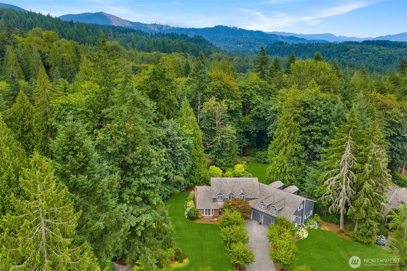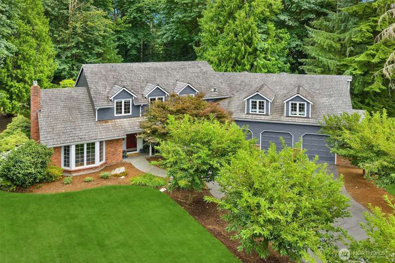 Exceptional Burnstead 2-Story in coveted South Firs set on a shy acre in a serene cul-de-sac with lush, park-like grounds. Thoughtfully designed and impeccably maintained. Refinished hardwoods, new carpet, and fresh interior/exterior paint. Remodeled kitchen features Cambria quartz countertops, custom maple cabinetry, Stainless Steel GE Profile appliances, including new 5-burner gas cooktop/dishwasher. Great room features soaring ceilings with dramatic river rock fireplace and wet bar. Main-floor guest suite, 3/4 bath, and office. Primary suite boasts 5-piece bath, double walk-ins, and flex space/gym. Large 3-Car Garage, newer furnace, A/C, water heater, and new cedar shake roof with transferrable warranty. Award-winning Issaquah Schools.