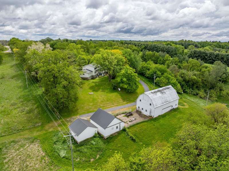 RUN DONT WAIT! RUN TO VIEW THIS ONE OF A KIND HOME THAT SITS ON OVER 15.5 PICTURESQUE ACRES. HOME OFFERS 3 LEVELS OF LIVING SPACE, MAIN FLOOR LAUNDRY, HALF BATH, AS WELL AS A BEDROOM, OFFICE OR DEN W/ SEPARATE ENTRANCE, LARGE FAMILY ROOM W/ WOOD BURNING FIREPLACE THAT LOOKS OUT OVER YARD AND BARN AREA AND SUN DECK. UPPER LEVEL OFFERS LARGE MASTER W/ EN-SUITE AND LARGE CLOSET AS WELL AS 3 OTHER BEDROOMS AND ANOTHER FULL BATH. LOWER LEVEL OFFERS HUGE REC ROOM W/ FIREPLACE, SUMMER KITCHEN, LARGE DEN AND ONE MORE CONFORMING BEDROOM AND FULL BATHROOM, WALK OUT INTO THE LARGE ENCLOSED PORCH THAT LOOKS OUT OVER THE PICTURESQUE ACREAGE... DID I MENTION A HUGE WORKSHOP WITH EXTERIOR DOOR AND HALF BATH. GROUNDS OFFERS SEPERATE 60X30 POLE BARN, BARN W/ STABLES, ANOTHER GARAGE AND INSULATED WORKSHOP. WHOLE HOUSE GENERATER COMES WITH PROPERTY..