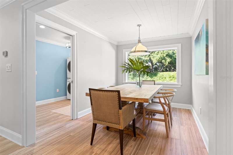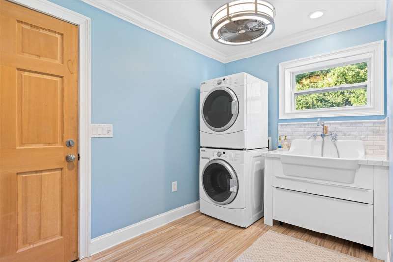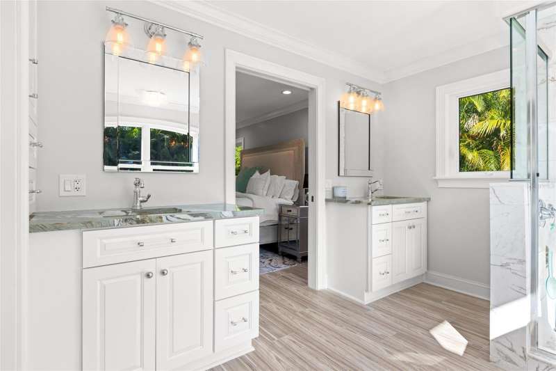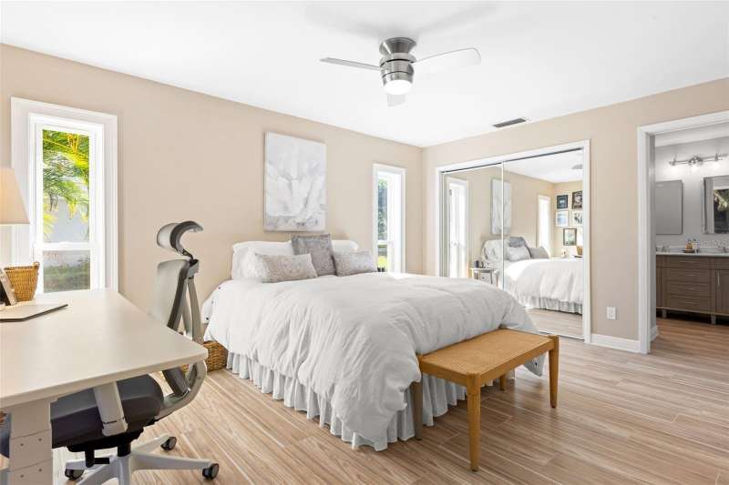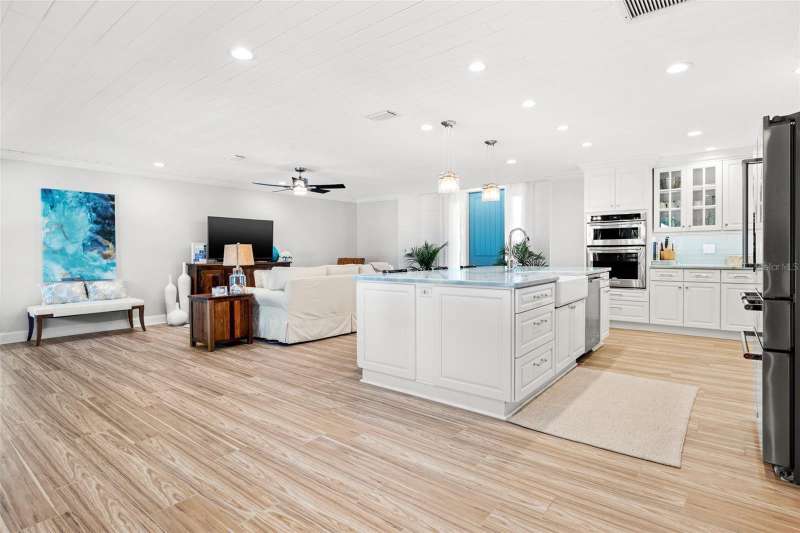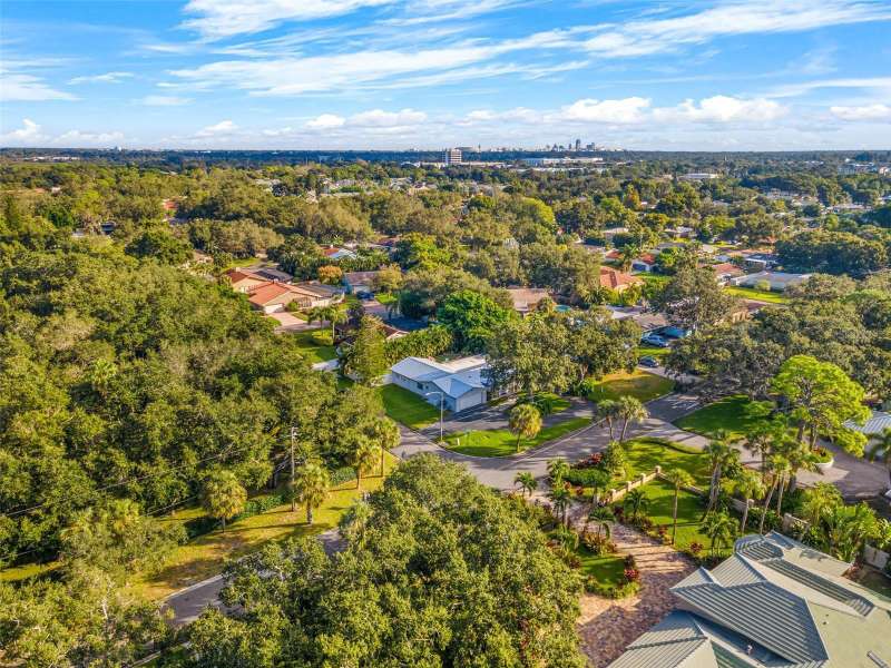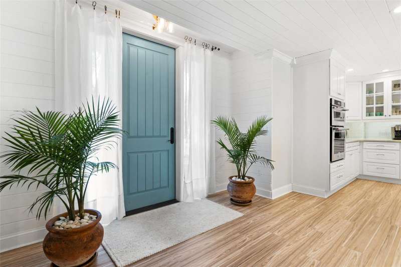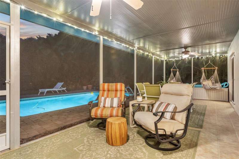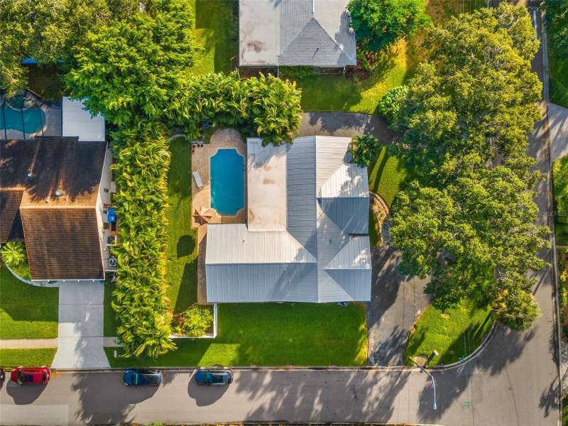 Broadwater is booming, and this custom-upgraded pool home puts you at the heart of one of St. Petersburg’s most exciting neighborhoods for growth, convenience, and coastal living. No stone was left unturned in this thoughtful, top-to-bottom remodel. Set on an oversized corner lot, this block-construction 2 bedroom, 2.5 bath ranch-style POOL home lives large with an open concept layout where the living room and chef’s kitchen flow seamlessly together. Walls of oversized, impact windows frame the tropical backyard oasis and bathe the interiors in natural light. The entertainer’s kitchen features custom wood cabinetry with oversized soft-close and spice drawers, a dramatic 10x5 island with farmhouse sink, dishwasher and extra storage/seating, striking quartzite countertops, and premium KitchenAid appliances—including a 36" 6-burner gas range, 5- door refrigerator, combo wall oven/microwave, plus a wine fridge and ice maker in the butler’s pantry. Porcelain tile flooring carries throughout. The split plan offers two spacious bedrooms, each with an ensuite bath, plus a convenient half bath that opens to the screened lanai for easy pool access. The serene primary suite provides a custom walk-in closet, sitting area, and a spa-worthy bath with dual vanities with quartzite countertops, a marble walk-in shower boasting four niches, and a Victoria + Albert Marlborough double-ended slipper tub overlooking the lush landscape including 30+ Eureka palms—designed for everyday resort living. Enjoy glimpses of Boca Ciega Bay from the dining area and the primary suite and prepare for sunsets that will take your breath away. Arrive through the garage to a charming laundry/mudroom with a custom farmhouse sink. Outdoors, Florida living shines: a large screened porch (accessed by a sliding pocket door) overlooks the sparkling pool and fully fenced, private backyard, complete with a Meyer lemon tree. Notable upgrades include a 2017 metal roof, a Trane 3.5-ton HVAC with transferable 10-year warranty (installed 2021), updated plumbing and electrical, water softener, tongue-and-groove pine ceiling accents, Moen fixtures, crown moulding with upgraded trim/baseboards, solid wood interior/exterior doors, a security-minded front door with triple deadbolt and insulated sidelights, designer lighting, extensive LED recessed and under-cabinet lighting, refreshed exterior stucco, gutters with guards and soffits, pool equipment updates, newer toilets, exterior security cameras and motion lighting, added insulation, new ceiling fans, and a wide driveway with extra guest and boat/RV parking. All of this in a superb location a few blocks to the multi-million-dollar Maximo Marina, close to waterfront dining, and just minutes to St. Pete Beach and vibrant Downtown St. Petersburg, with quick I-275 access for easy commutes and airport runs. Come experience Broadwater’s best—schedule your private tour and make this stunning residence your new place to call home.