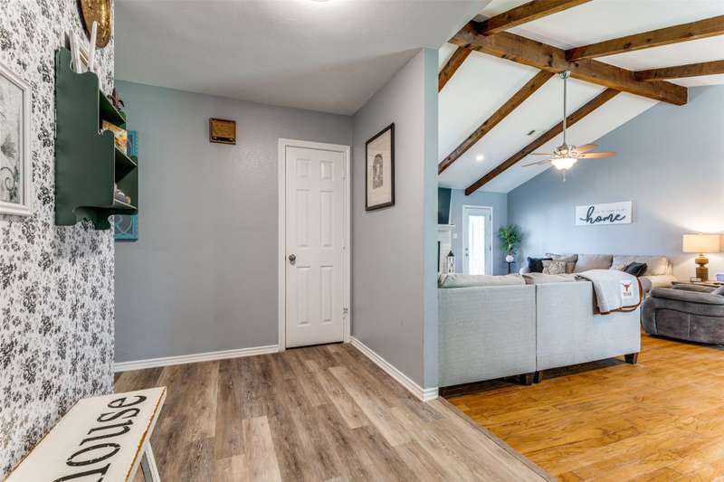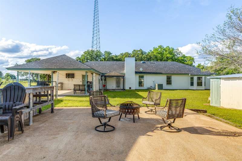 Wow! RARE & UNIQUE property on 2.991 acres & has TWO HOUSES on it! *2.75% ASSUMABLE LOAN!* Sellers offering 10K towards Closing Costs, or Updates w full price offer. Price per sq ft is reflecting the main house of approx. 2200 sq ft not the Guest house, which is an additional approx. 1100 sq ft, totaling approx. 3300 sq ft of living between both houses! Mature Pecan & Oak trees w a small pond & the 25X12 porch greet you, while the Texas flare & patio welcomes you in the back. Main house features a relaxing & spacious primary suite, split bedroom floorplan, w 3 additional secondary bedrooms, 2 full baths w built in linen cabinets. Great family room w vaulted ceiling, real wood beams, hardwood floors, a brick wood burning fireplace w raised hearth & prewired for TV, & surround sound. Kitchen has Granite counters, SS appliances, Tile backsplash w decorative accent, Wood-stained cabinets, 5 burner Gas cooktop, & Built in cabinets in corners of the breakfast rm. Huge Utility rm has 42 in cabinets, 2 storage closets, sink, and walk in pantry & room for a freezer. This room allows expansion of the primary bath & closet if desired! Wood laminate floors added in 2020, 2 inch blinds in 2021, ceiling fans, & more! Both homes & the outbuildings have a been recently Professionally painted on the exterior. Windows in main house were replaced w energy efficient vinyl tilt sash in 2018, Roof replaced on Main house, Guest house, shop & barn in 2022. Tons of storage & recently added 15X40 Metal RV-Boat cover in 2022. The charming Guest house has endless options & would make a wonderful Mother-in-law space, multigenerational living opportunity, potential rental option, or a Fun Man cave or She shed! It features living room, kitchen with electric cooktop, 2 bedrooms, 1 bathroom, & large entry & laundry space, plus recent Interior paint in 2022. This property is perfect for entertaining & making memories together. Bring your animals, and family & friends to enjoy your piece of Paradise!