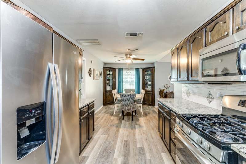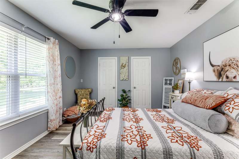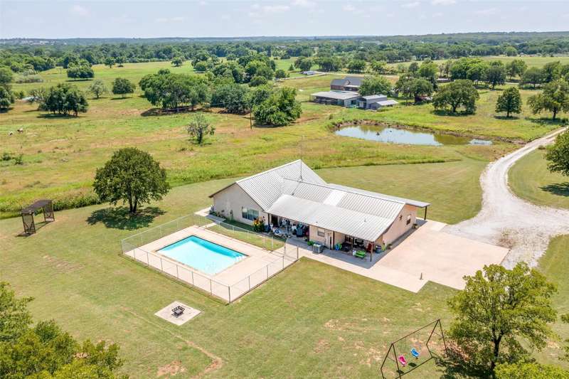 Wow! RARE & UNIQUE property on 2.991 acres & has TWO HOUSES on it! *2.75% ASSUMABLE LOAN!* The Price per sq ft is only reflecting the main house of approx. 2200 sq ft & doesn't include the sq ft of the Guest house, which is an additional approx. 1100 sq ft, totaling approx. 3300 sq ft of living space between both houses! Mature Pecan & Oak trees w a small pond & the 25X12 porch greet you, while the Texas flare & patio welcomes you in the back. The Main house features a relaxing & spacious primary suite, split bedroom floorplan, w 3 additional secondary bedrooms, 2 full baths w built in linen cabinets. Great family room w vaulted ceiling, real wood beams, hardwood floors, a brick wood burning fireplace w raised hearth & prewired for TV, & surround sound. Kitchen has Granite counters, Stainless steel appliances, Tile backsplash w decorative accent pieces, Hand-stained wood cabinets, 5 burner Gas cooktop, & Built in cabinets in each corner of the breakfast rm. Huge Utility rm has 42 in cabinets, 2 storage closets, sink, and walk in pantry & room for a freezer. This room allows expansion of the primary bath & closet if desired! Wood laminate floors added in 2020, 2 inch blinds in 2021, ceiling fans, & more! Both homes & the outbuildings have a been recently Professionally painted on the exterior. Windows in main house were replaced w energy efficient vinyl tilt sash in 2018, Roof replaced on Main house, Guest house, shop & barn in 2022. Tons of storage & recently added 15X40 Metal RV-Boat cover in 2022. The charming Guest house has endless options & would make a wonderful Mother-in-law space, multigenerational living opportunity, potential rental option, or a Fun Man cave or She shed! It features living room, kitchen with electric cooktop, 2 bedrooms, 1 bathroom, & large entry & laundry space, plus recent Interior paint in 2022. This property is perfect for entertaining & making memories together. Bring your animals, and family & friends to enjoy your piece of Paradise!