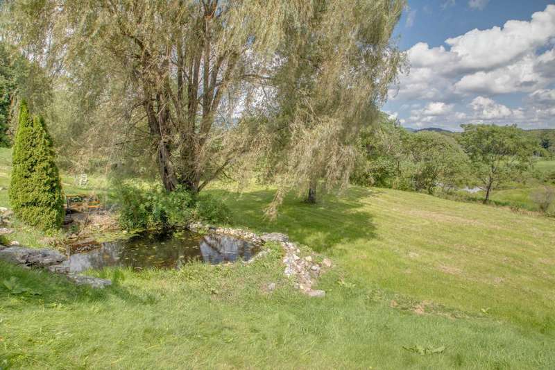 $50k Price reduction! The Circle House - Plymouth, NH! Historic 1850s brick house located on 5.9 +/- acres of land with premium exposure on Tenney Mountain Highway and a spacious backyard oasis with mountain views. Currently set up as a single-family residence, this could be an ideal home business location, multi-family, or even resurrecting the Bed and Breakfast that a former owner ran. Impressive masonry construction filled with character from a bygone era. Original hardware on doors and custom-built-ins, rare, antique Crawford Woodstove/range, wide plank wood flooring, and a large detached 3-stall barn. The original brick home has laundry on the main level, a full bathroom, a kitchen, a living room, and one bedroom. Upstairs, you will find two more bedrooms, a ¾ bath, two additional rooms, and a nice reading nook. The addition to the right side has a full bathroom, a partially finished room, and an ample loft space above. The attached barn has many original features, such as hand-hewn beams, and serves well to store firewood or any other items. Enjoy the beautiful custom-built waterfall and pond in the backyard. Help offset some of your costs with the annual rental income from the Billboard. Ideal location near all Tenney Mountain Highway businesses, PSU, a short distance to restaurants/breweries, and quick access to I-93. Bring your ideas and schedule a showing today!
