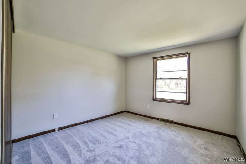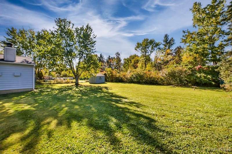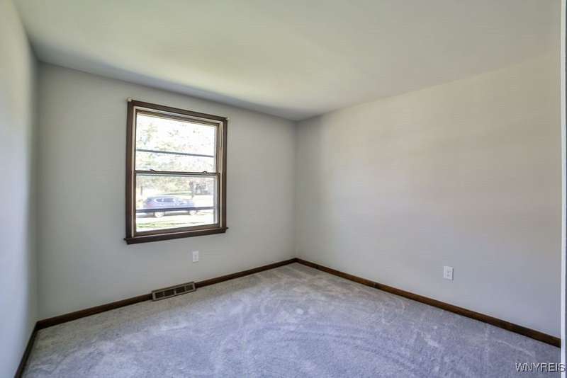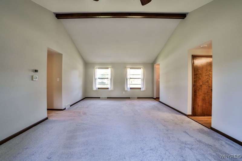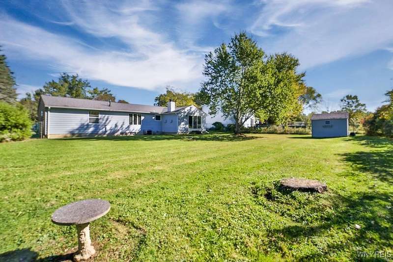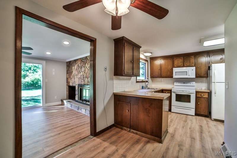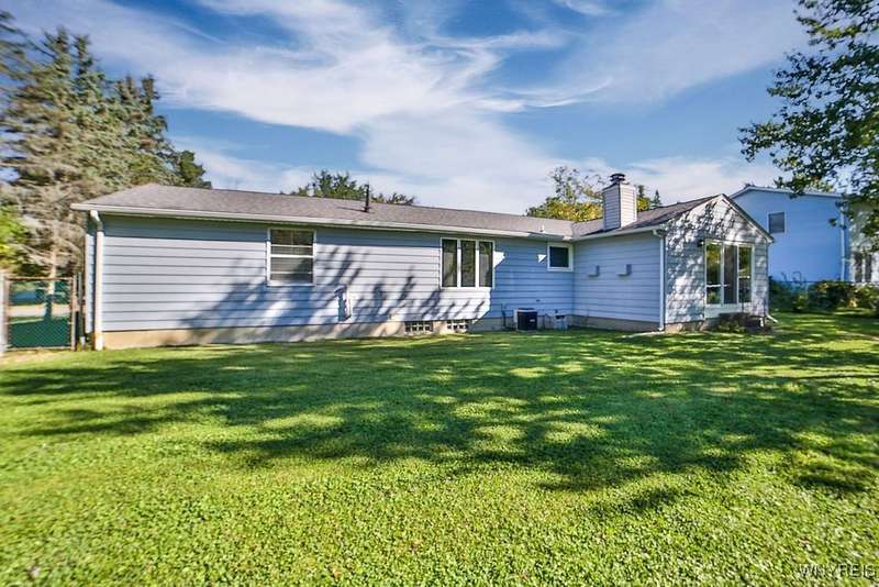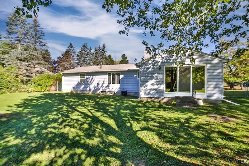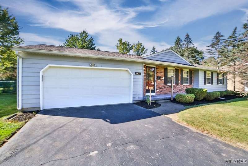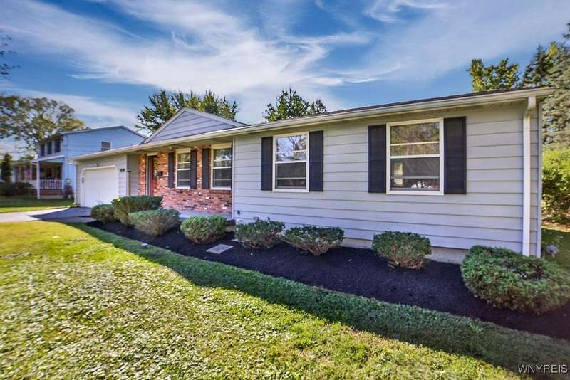 Fantastic maintenance free ranch, nicely situated between Orchard Park and Hamburg villages and minutes to Rt 219 expressway for convenience. Family room with stone faced gas fireplace & sliders to yard. Kitchen has wood cabinetry, laminate floor & is fully applianced, with adjacent breakfast room. Entry foyer has double closet. Living room with beamed cathedral ceiling & sunny windows. Primary bedroom has triple closet & extra sink with dressing area. Double closets in other two bedrooms. Full walk through bath has ceramic floor & new vanity. Partial basement. Poured walls. Washer/dryer stay. Updated w/w carpeting & paint throughout- September 2025. Mechanic dates approximate -roof 10 years, furnace 10 years, A/C 6 years, HWT - 2025. Fenced yard,shed, two and 1/2 car attached finished garage. A great house - move in condition.