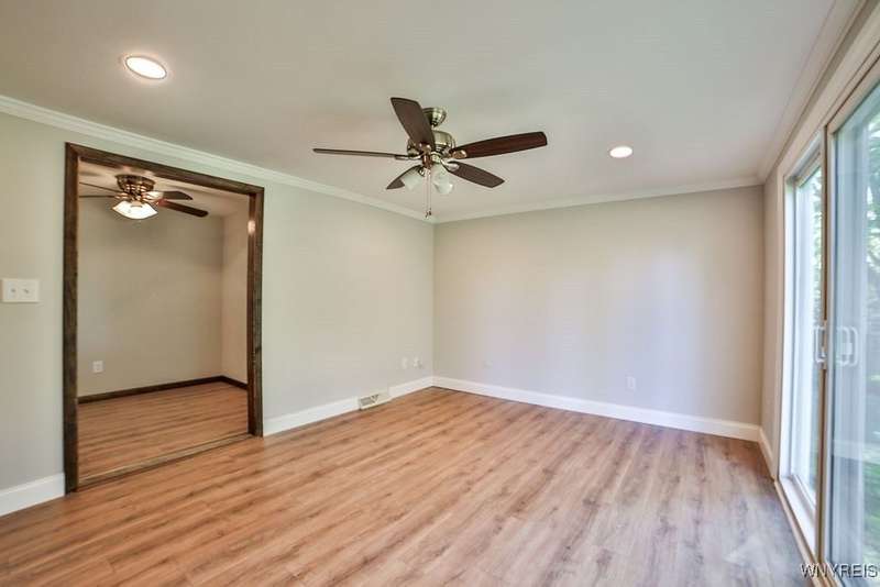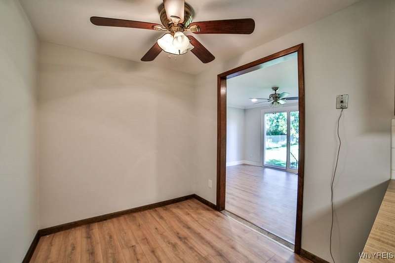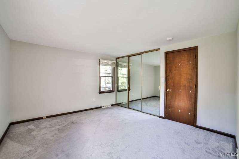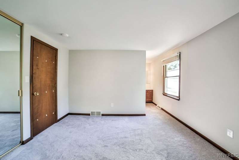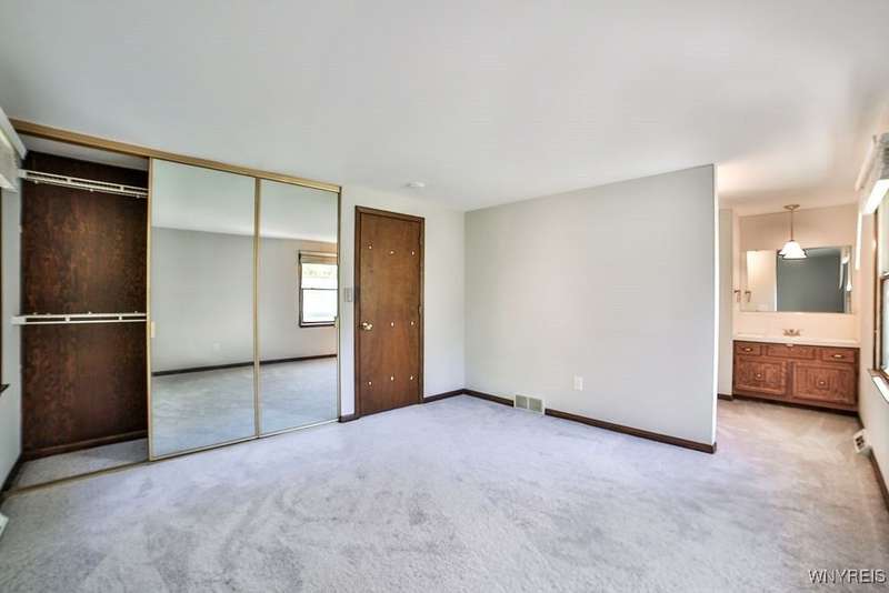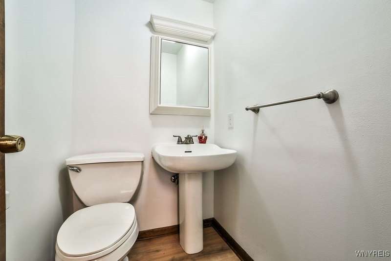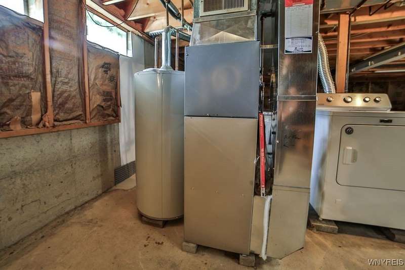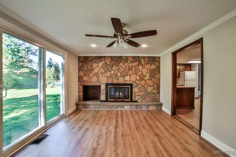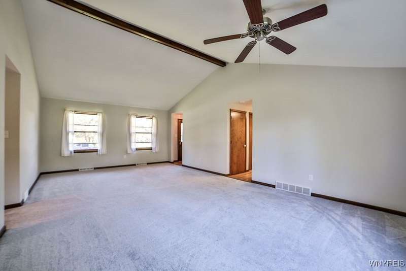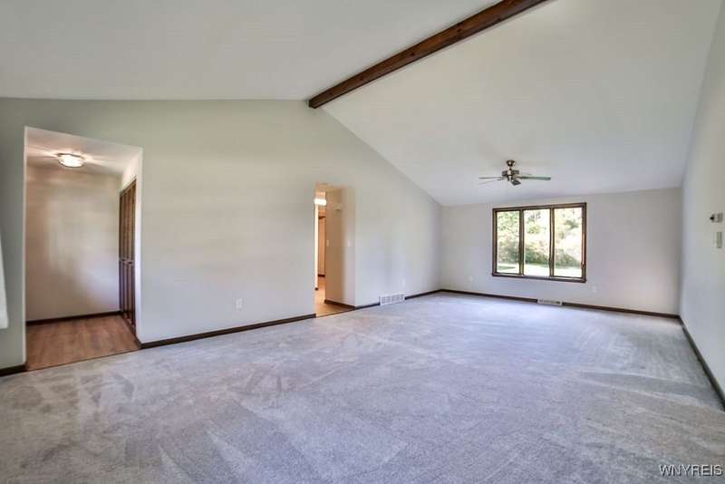 Fantastic maintenance free ranch, nicely situated between Orchard Park and Hamburg villages and minutes to Rt 219 expressway for convenience. Family room with stone faced gas fireplace & sliders to yard. Kitchen has wood cabinetry, laminate floor & is fully applianced, with adjacent breakfast room. Entry foyer has double closet. Living room with beamed cathedral ceiling & sunny windows. Primary bedroom has triple closet & extra sink with dressing area. Double closets in other two bedrooms. Full walk through bath has ceramic floor & new vanity. Partial basement. Poured walls. Washer/dryer stay. Updated w/w carpeting & paint throughout- September 2025. Mechanic dates approximate -roof 10 years, furnace 10 years, A/C 6 years, HWT - 2025. Fenced yard,shed, two and 1/2 car attached finished garage. A great house - move in condition.