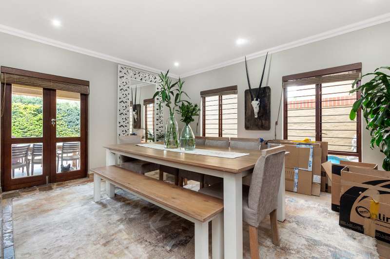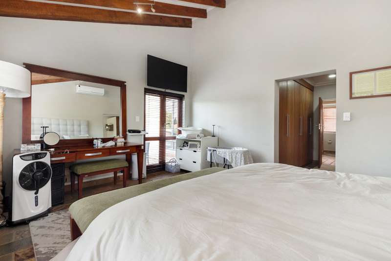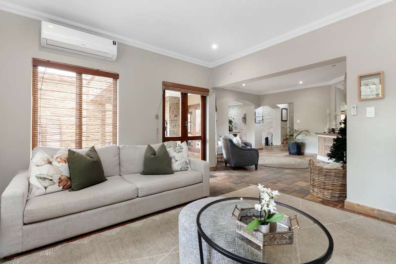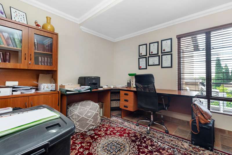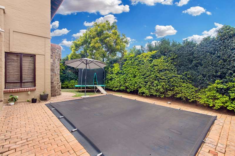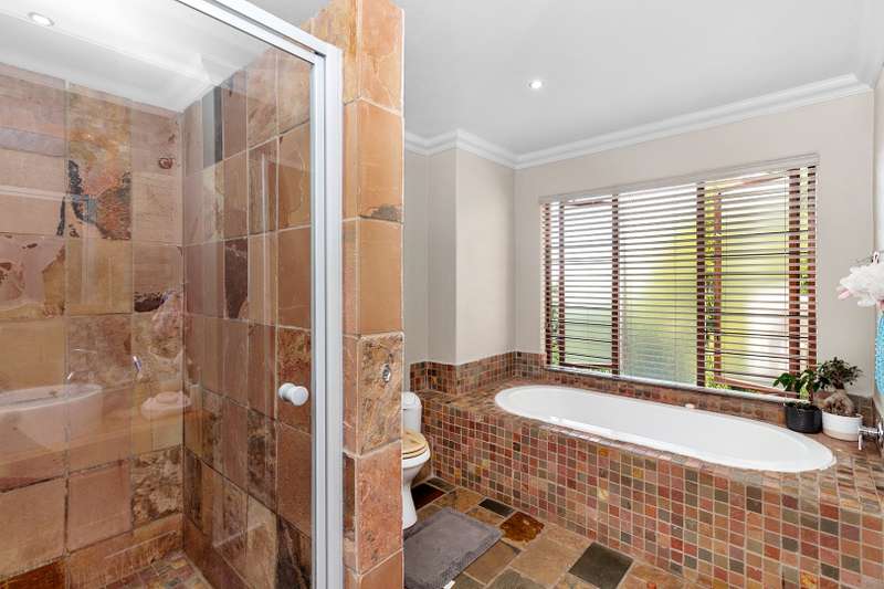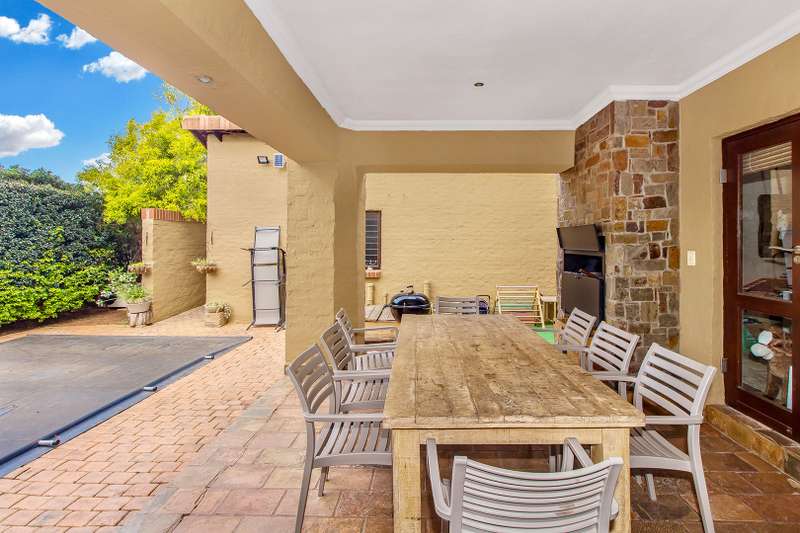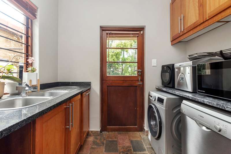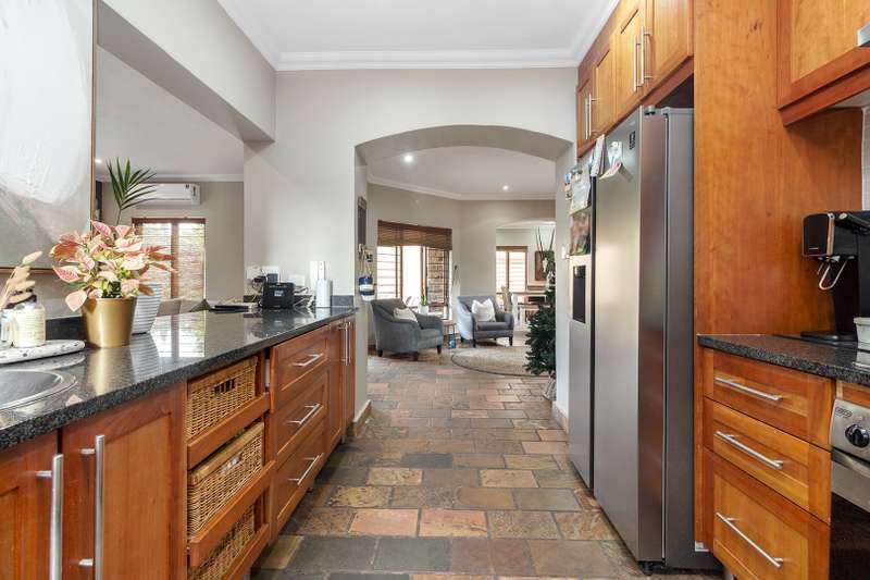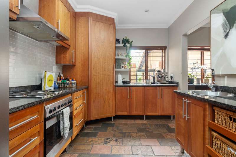Elegant and Spacious Townhouse for Sale in The Wilds Estate Nestled in the heart of the prestigious The Wilds Estate, this beautifully designed townhouse offers a seamless blend of luxury, comfort, and practicality. Boasting a prime location within one of Pretoria’s most sought-after estates, this home provides not only exceptional security but also access to exclusive amenities, including a communal clubhouse, swimming pool, squash courts, and tennis courts. Ground Floor Living As you enter the home, you are welcomed into a bright and spacious interior with an inviting layout. A separate dining area provides the perfect space for hosting family gatherings or intimate dinners. The living area is expansive yet cozy, with large windows allowing natural light to flood in, creating a warm and inviting atmosphere. Adjacent to the living space is the well-designed kitchen, featuring black granite countertops and warm wooden cabinetry that offers ample storage. The kitchen is equipped with a four-plate stovetop, undercounter oven, and extractor fan, while a dedicated space for a double-door fridge adds to the convenience. Just around the corner, the scullery is thoughtfully tucked away and includes a double sink and space for both a washing machine and dishwasher. The living room opens onto a covered patio with a built-in braai, ideal for outdoor entertaining or relaxing while overlooking the estate’s private pool. Surrounded by tall trees, the patio offers a sense of seclusion and privacy, ensuring you never look directly into a neighbor's home. This level also includes a guest bathroom and domestic quarters, enhancing the home’s functionality. Upper Floor Comfort A beautiful staircase with stone tile accents leads to the upper level, where three spacious bedrooms and a study await. Each bedroom features double-volume ceilings and built-in cupboards, providing a sense of space and comfort. The main bedroom is a private sanctuary with a walk-through closet leading to a luxurious en-suite bathroom that includes a bath, shower, toilet, and vanity with ample storage. A sliding door opens onto the balcony, which is shared with the second bedroom, offering tranquil views of the surrounding estate. The second bedroom also enjoys direct access to the balcony, while the third bedroom is bright and airy, with large windows allowing natural light to flow in. A dedicated study with a view of the balcony provides the perfect space for remote work, reading, or quiet contemplation. A second full bathroom on this level features a shower, bath, sink, and toilet, conveniently serving the remaining bedrooms. Additional Features This home is designed with both comfort and practicality in mind. A double garage offers secure parking for two vehicles, while backup water tanks provide peace of mind during water outages. Each bedroom is fitted with an air conditioner, ensuring year-round comfort, and the home’s stone tiles add a touch of elegance throughout. Abundant natural light streams through large windows, enhancing the home’s warm and inviting ambiance. The thoughtful design, combined with its prime location and access to world-class amenities, makes this townhouse a rare find in The Wilds Estate. Don’t miss the opportunity to own this stunning home! Contact us today to arrange a private viewing and experience all it has to offer.