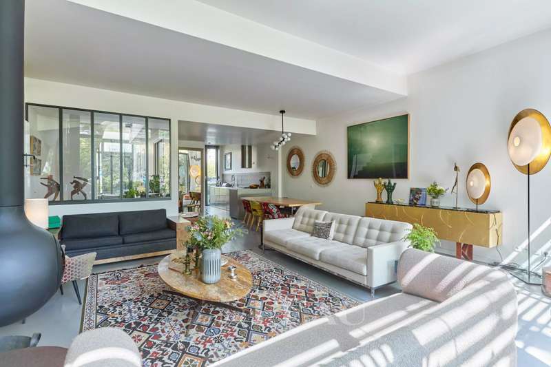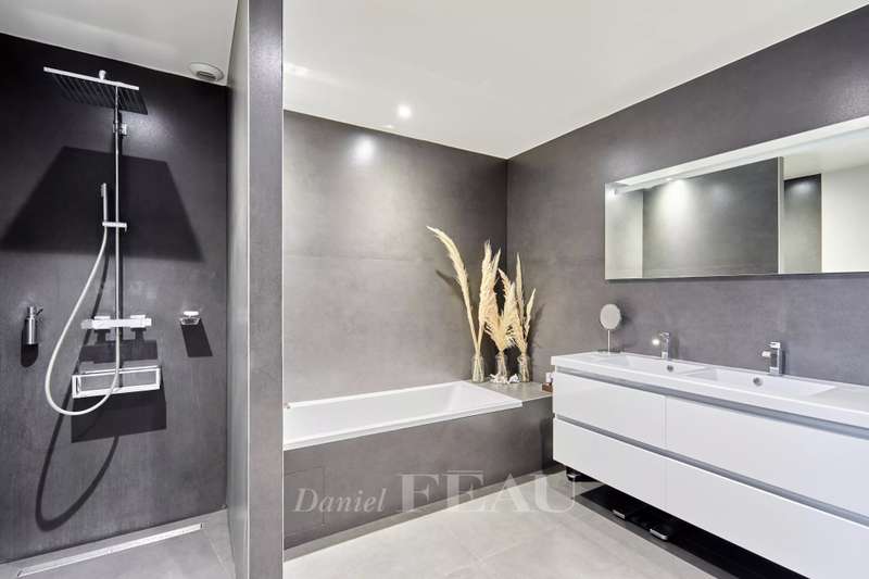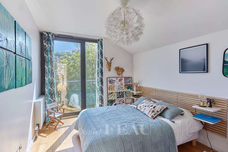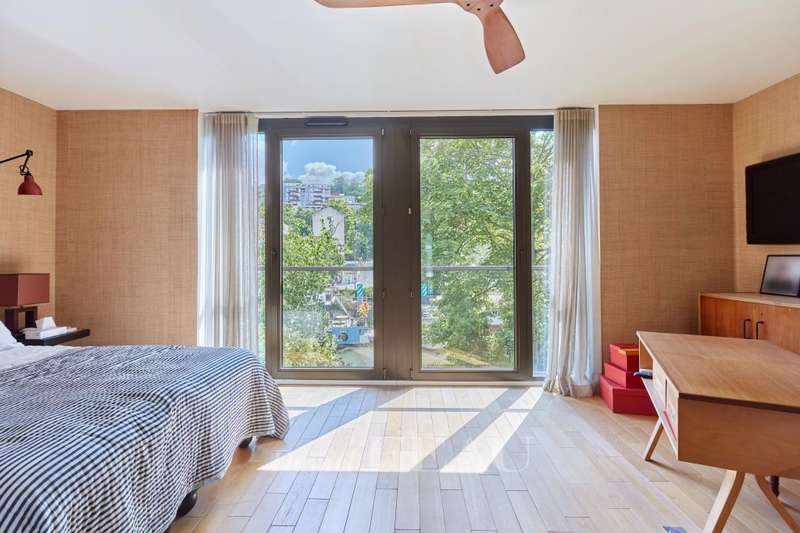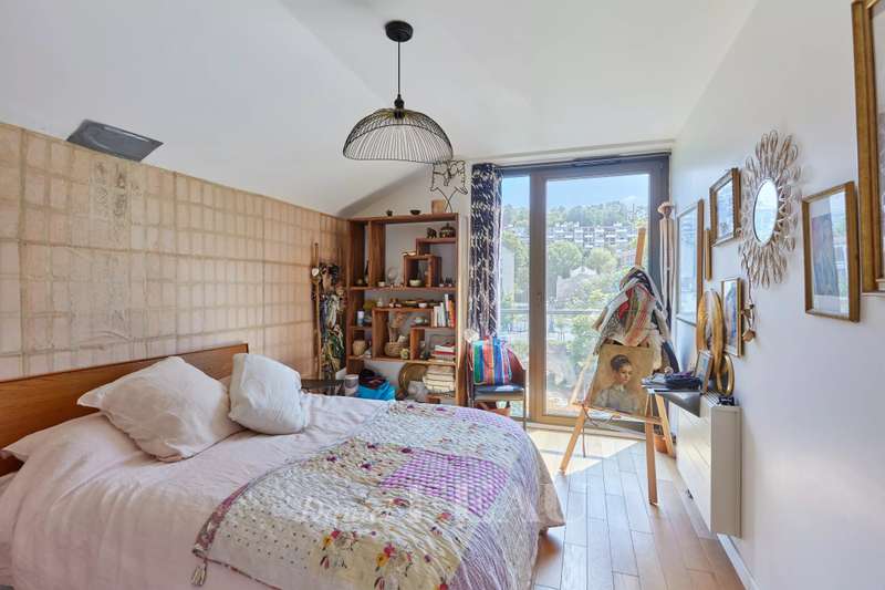 On Ile Saint Germain, linked to Boulogne by the Pont de Billancourt, this architect-designed property dating from 2015 benefits from a pontoon directly accessing the Seine. Offering 238 sqm of floor space and 211 sqm of living space as defined by the Carrez Law, it includes an entrance hall featuring an 8.80 metre high ceiling, and a south-facing near 70 sqm living/reception room with an equipped semi open-plan kitchen bathed in sunshine thanks to three patio windows opening onto 3 terraces accessing the pontoon. A master suite with a bathroom and dressing room, and a second bedroom with a shower room are upstairs. The top floor comprises three further bedrooms and a bathroom. On a basement with two parking spaces and storage space. A haven of peace on the south-western edge of the capital.