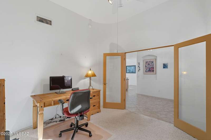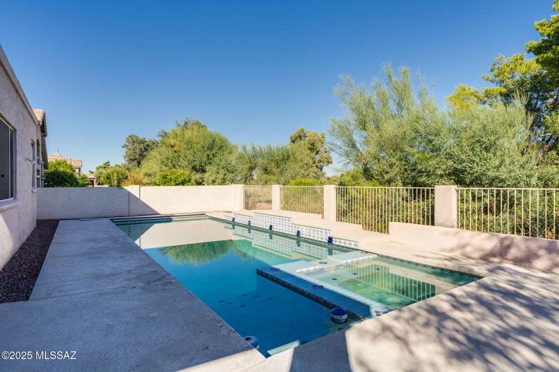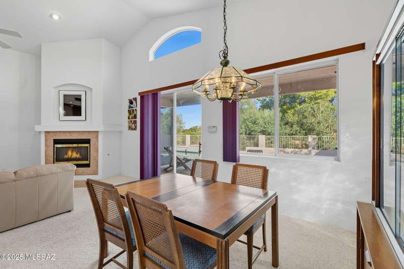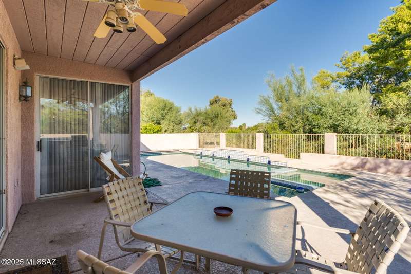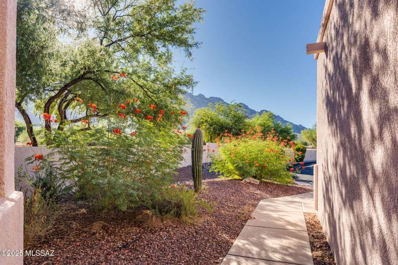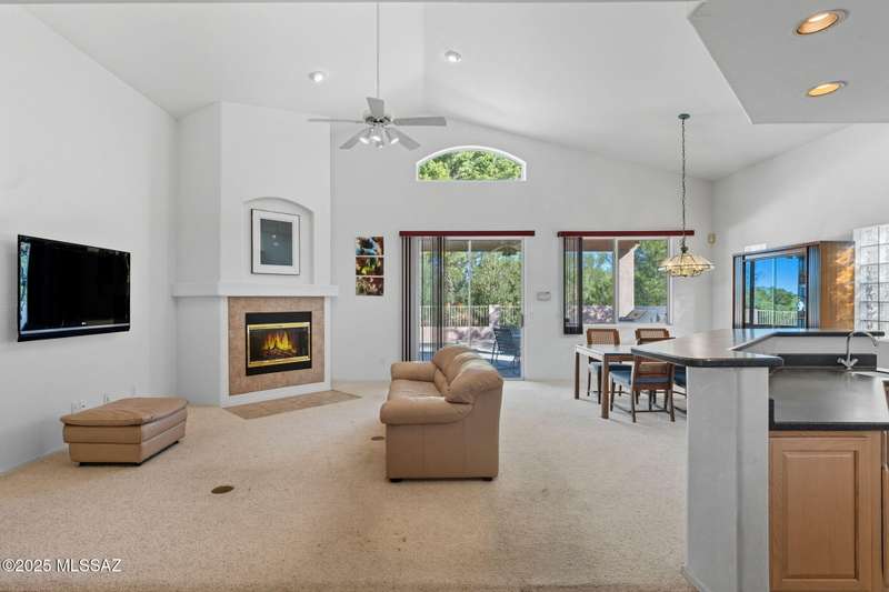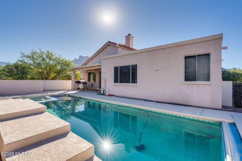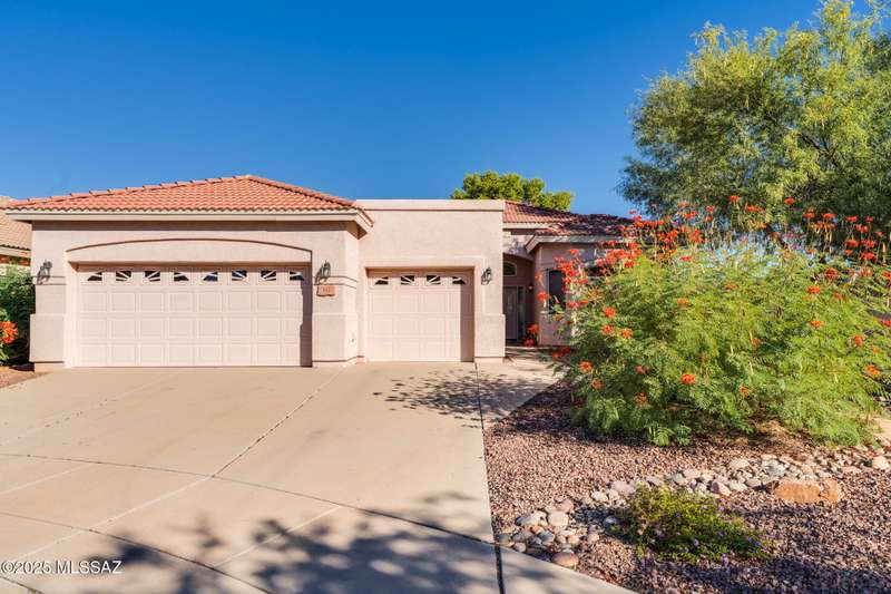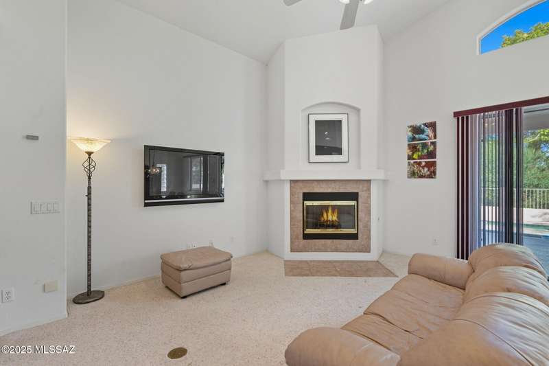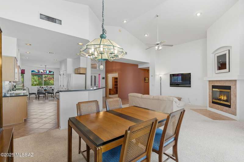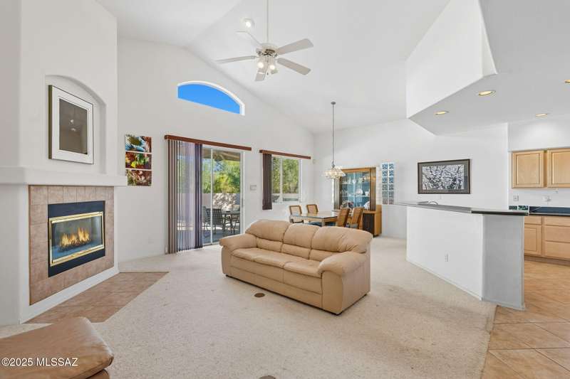 Charming 3BD/2BA +Den (2,163 sq ft) corner lot home on golf course in desirable Desert Greens at Oro Valley Country Club offers peeks of the Catalinas and no neighbors to one side. This 23-home gated community rarely sees a home come on the market. Brand new HVAC plus water heater in 2020. Step inside to an open concept plan with soaring vaulted ceilings, corner fireplace and spacious kitchen with island and breakfast nook w/ bay window. Primary Suite with ensuite bath has walk-in closet, soaking tub & separate shower. Den/Office with glass panel French doors lies off foyer. Laundry room plus 3-car extended garage with storage cabinets. Retreat to a covered patio overlooking a pool/spa with views of the golf course. Close to all amenities, this is the perfect home or home away from home!