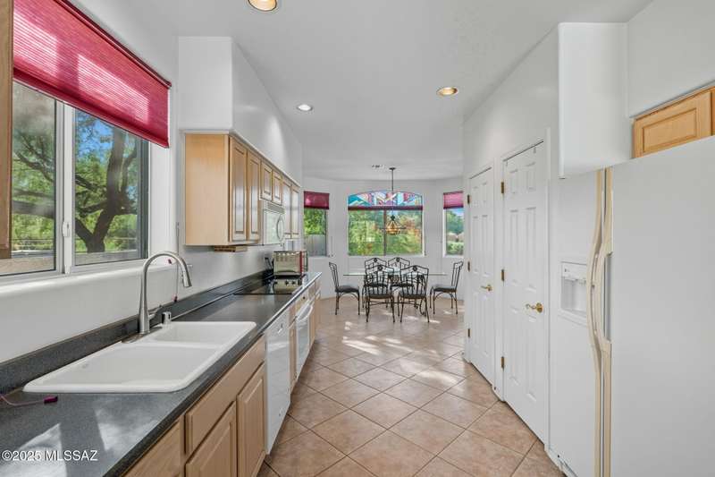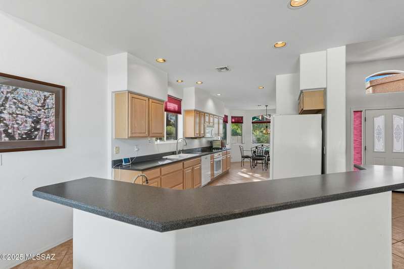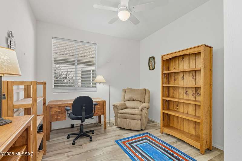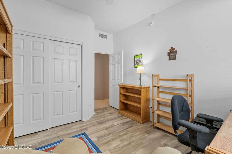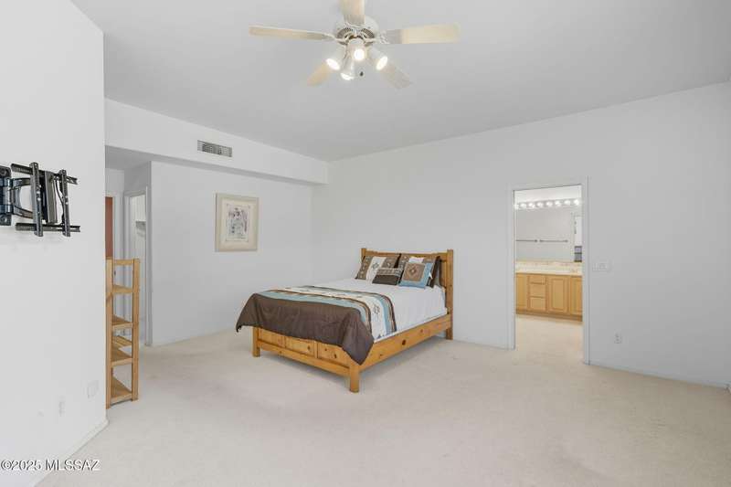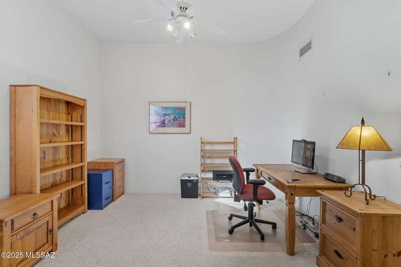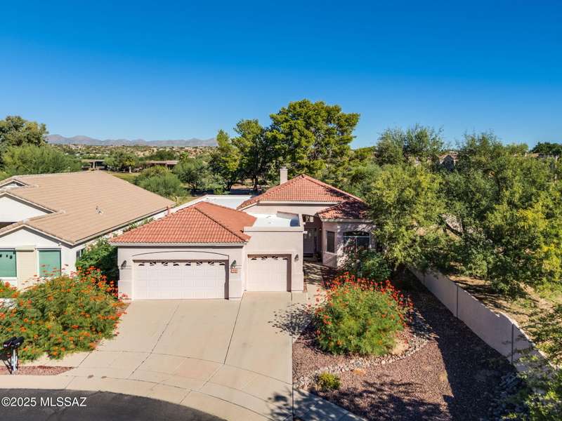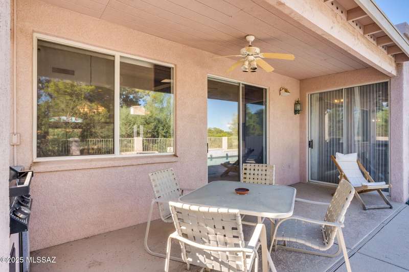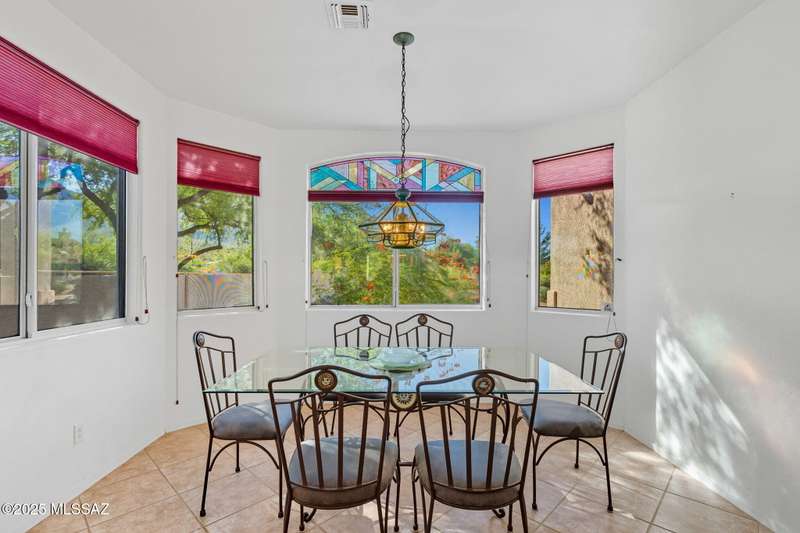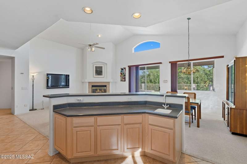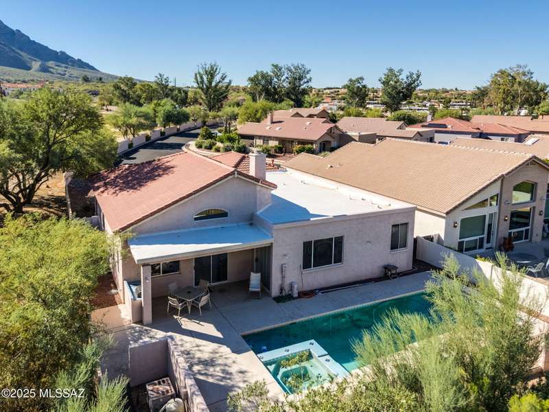 Charming 3BD/2BA +Den (2,163 sq ft) corner lot home on golf course in desirable Desert Greens at Oro Valley Country Club offers peeks of the Catalinas and no neighbors to one side. This 23-home gated community rarely sees a home come on the market. Brand new HVAC plus water heater in 2020. Step inside to an open concept plan with soaring vaulted ceilings, corner fireplace and spacious kitchen with island and breakfast nook w/ bay window. Primary Suite with ensuite bath has walk-in closet, soaking tub & separate shower. Den/Office with glass panel French doors lies off foyer. Laundry room plus 3-car extended garage with storage cabinets. Retreat to a covered patio overlooking a pool/spa with views of the golf course. Close to all amenities, this is the perfect home or home away from home!