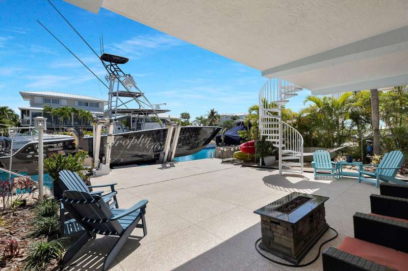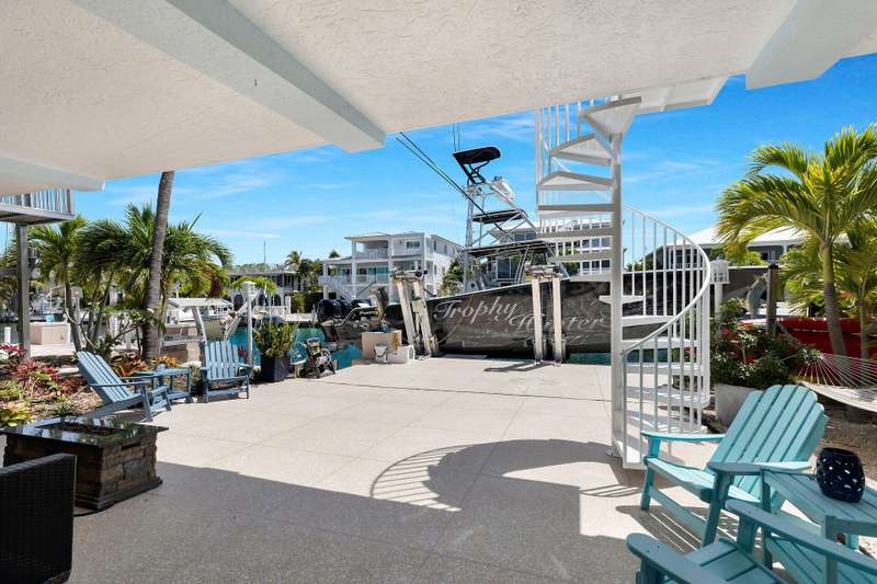Exceptional 4 bedrooms 3.5 bath gorgeous waterfront home in Islamorada's Port Antigua awaits a new owner! Dramatic main living area with cathedral ceiling, freshly painted, recent new roof, impact windows, roll down shuttered second level outside balcony for entertaining, top of the line kitchen with Miele and Sub Zero appliances and Faber exhaust island stove, exquisite baths, wine cooler, ice machine (negotiable) grand staircase entry way, alarm system, wired for stereo inside and out, covered parking, room for pool, great entertainment and storage area on ground level along with spacious tackle and storage. Tropical fruit trees, shady side of the canal and a superior neighborhood park with ramp and private homeowner's beach round out this Keys treasure. 27500lbs elevator lift for your big boat. Originally designed for 42 Freeman Catamaran. Easy to show. Contact agent for appointment.