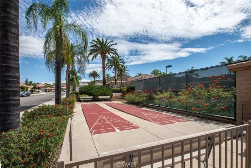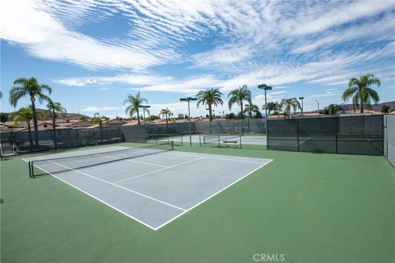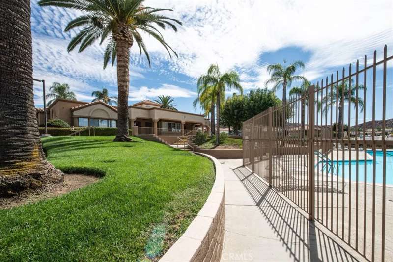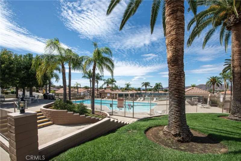 Beautifully upgraded home in the exceptional "Over 55" Casa Blanca Villas community with low, low HOA dues and no Mello-Roos. Wood like laminate floors throughout except the tile floors at the entry, dining area and kitchen. The bright living room features a slider to the covered patio and the manicured rear yard. Dining room featuring floor-to-ceiling accent mirrors. Fabulous kitchen overlooking the Living and Dining rooms with a breakfast bar, granite counters, rustic cabinets, separate pantry, stainless steel sink and newer premium appliances including a 5-burner gas range. The back master bedroom has mirrored closet doors and en-suite bathroom with big shower. The additional bedroom is in the front of this home insuring privacy between the two bedrooms and it also has mirrored closet doors and can be used as a 2nd master with adjoining full bath. Back yard covered concrete and paver patios and gardens. Lovely landscaping in the front yard and entry side yard. 2-car finished garage. Viny and block wall fencing all around. Extraordinary community amenities including a clubhouse with auditorium/meeting room, library, fitness center and billiard parlor. Pool, spa, big patio areas, two night lighted tennis courts and shuffleboard. Ideally located about an hour's drive to L.A. and Orange Counties, downtown San Diego, Palm Springs and Idyllwild. Close to Temecula, Casinos and The Wine Country.