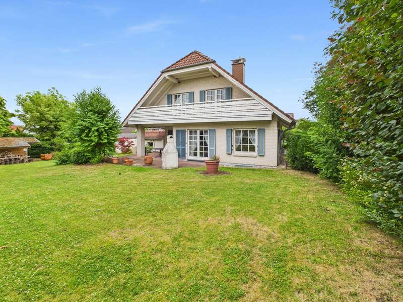 For sale is a well-maintained detached house in a central yet quiet location, which was built in 1987. The property offers a generous living space of approx. 142 m², spread over two floors, and stands on a plot of approx. 834 m². The house is characterized by a pleasant room layout with a total of five rooms. It also offers a spacious, partly covered terrace and two loggias on the upper floor, so that you can spend your free time in the fresh air. On the lower level, there is a spacious living and dining area with a fireplace, which offers plenty of space for individual design, as well as a practical kitchen with all the amenities you need to meet your daily requirements. A further room on this floor can be used flexibly as an office or guest room. A staircase leads to the upper floor, which houses three spacious bedrooms. Each of the bedrooms promises sufficient privacy and is ideal for family members or guests. The space is rounded off by a bathroom equipped with all the necessary sanitary facilities. The house's central heating system was modernized in 2020, with an efficient gas central heating system installed to ensure a pleasant living climate. The windows throughout the house date from 1987 and are fitted with shutters with crank operation. Overall, good natural light is guaranteed in the rooms. Another advantage of the property is its location: the spa park is within walking distance, which not only offers recreational opportunities, but also a pleasant retreat for walks. The VitaSol Therme spa can be reached in around ten minutes by car and offers additional relaxation potential. The house is located in a well-kept residential area that offers both a quiet environment and good connections to city life. Shopping facilities, schools and public transport are within easy reach, making the location particularly attractive for families and professionals. We cordially invite you to take a closer look at this appealing home in an environment worthy of inspection. If you are interested, please contact us to arrange a viewing appointment. Take the opportunity to see the benefits of this property for yourself.