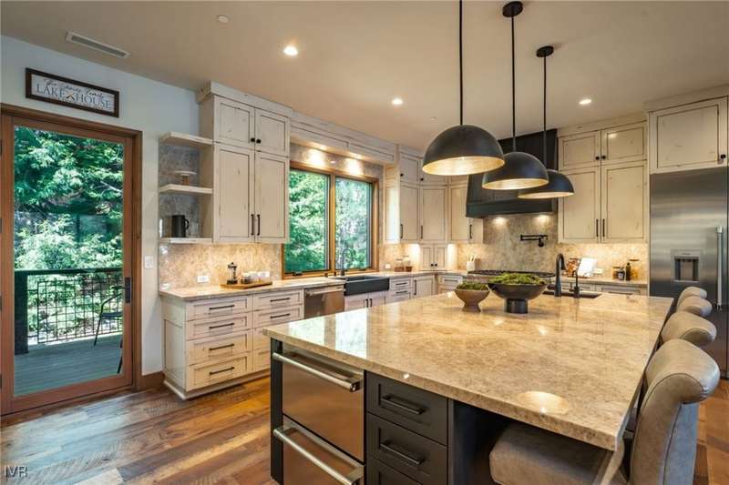 Welcome to 'Lakeshore Heaven, a rare, newer build estate on Tahoe's most iconic street of Lakeshore Blvd, with lake views from nearly every room! Built by award-winning Heller Construction, this home hosts 16+ guests & deep 6-car garage- plenty of room for boats and Tahoe toys to use across the street at Burnt Cedar Beach. Dual primary suites flank the home while soaring timber trusses and 4 fireplaces create a dramatic interior. Chef's kitchen showcases Thermador appliances, butler's pantry, wet bar, & BBQ deck for effortless entertaining. Lower-level retreat with bunk & guest rooms, an elevator, hidden movie screen, Savant sound system, and a luxe mudroom with pet wash station make this the ultimate multi-generational getaway. Entertain from 2 large covered decks or stroll across to Burnt Cedar Beach & Pool to enjoy lunch & cocktails beachside. Indulge in IVGID privileges: 3 private beaches, championship golf, tennis, pickleball & Diamond Peak skiing. Your lake life begins here!