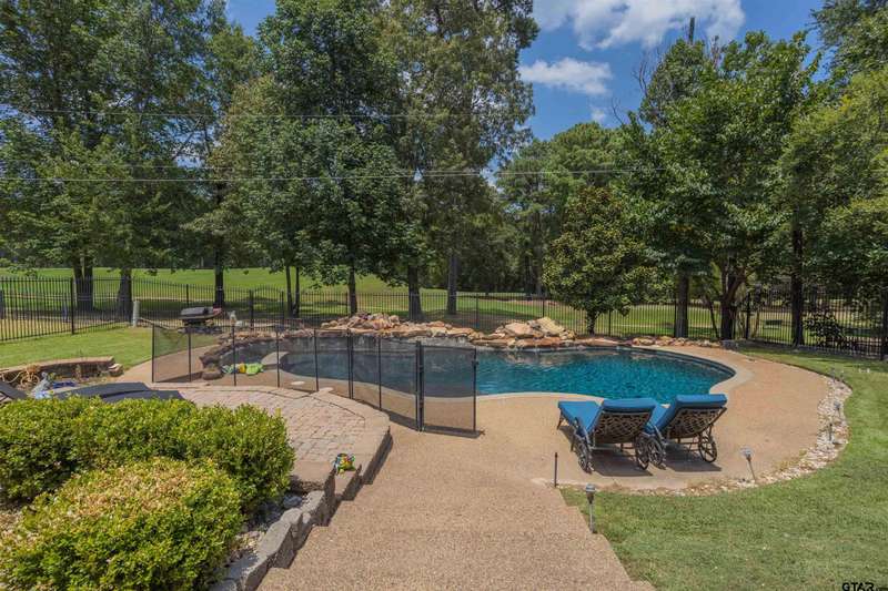 WELCOME to this stunning 4 bedroom, 3 bathroom, 3,236 square ft. home overlooking Hole 5 of the Oak Hurst Golf Course. This spacious and well-maintained property offers comfort, functionality, and incredible golf course views. Inside, you'll find three living areas-two downstairs and one upstairs-perfect for a game room, home office, or media space. The upstairs bathroom includes a laundry chute leading directly to the downstairs laundry room for added convenience. The primary suite is located on the main level and features two walk-in closets and a luxurious bathroom retreat. Large windows along the back of the home fill the space with natural light and provides beautiful views of the backyard, pool, and golf course. Step outside to your own oasis with a Gunite pool and rock waterfall, ideal for entertaining or relaxing. A pet-friendly dog/cat door allows your furry companions easy access to the yard. Don't miss the opportunity to make this remarkable home yours!