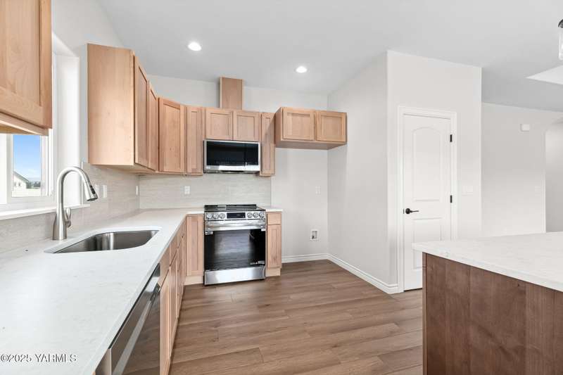 This newly built 3 bed/2 bath home offers quality craftmanship and comfortable one-level living. Thoughtfully designed with privacy in mind, the spacious primary suite is set apart from the other bedrooms and includes a walk-in closet and dual-sink vanity. The living room features sunny, south-facing windows and a trayed ceiling. The open concept layout flows from the living room to the dining area and the well-appointed kitchen, complete with a central island, eating bar, stainless steel appliances, and a walk-in pantry. Outside, enjoy a fully landscaped yard with underground sprinklers - perfect for low-maintenance living. A welcoming space to live, relax, and entertain, this home is ready to meet your everyday needs and more. Schedule your private showing today! **GPS may not provide accurate directions. Home is off 47th and Ahtanum.**