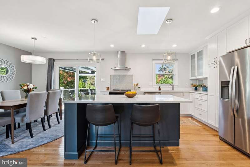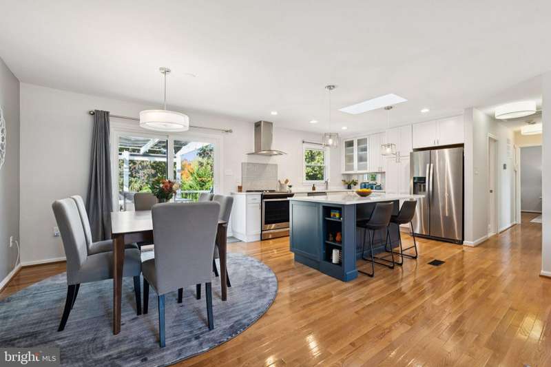 Inside, a bright open-concept kitchen with a center island flows seamlessly into the dining and living areas, accented by gleaming hardwood floors throughout the main level. Step out from the dining area onto a spacious deck, or enjoy the lower-level patio overlooking the lush backyard.
