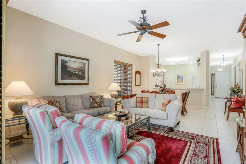 NORTH NAPLES VILLA LOCATED IN THE BEAUTIFUL GATED AND PRIVATE COMMUNITY OF STONEBRIDGE. This nicely decorated two-bedroom plus den, two bath villa has a center hall entrance which opens to the dining and living room and overlooks the lanai with your own private pool. The very well-maintained community has lush landscaping with walking and bicycling paths. The Club House was completely renovated and has multiple dining options, both inside and outside, formal or casual. There is a workout facility and a tennis pro on site and many activities in which to participate. Stonebridge is close to great shopping, fine dining, Artis Naples, Fifth and Third Avenues, Vanderbilt Beach and Delnor Wiggins State Park with its beautiful beaches.