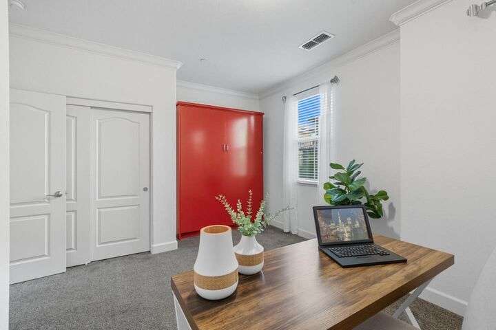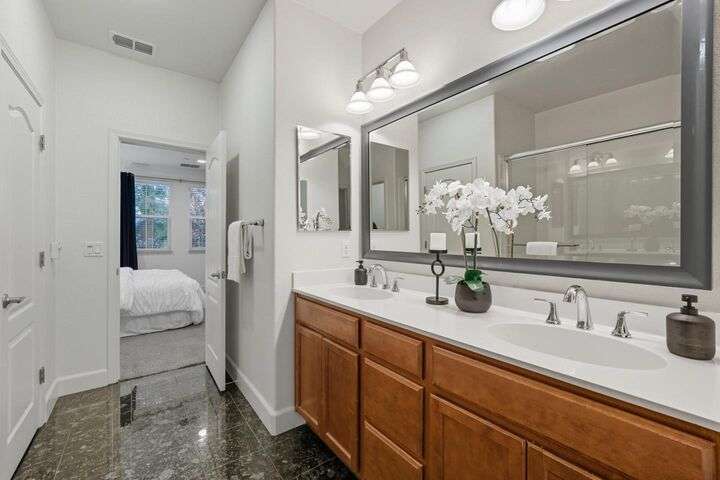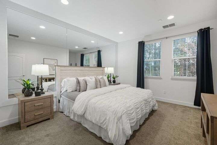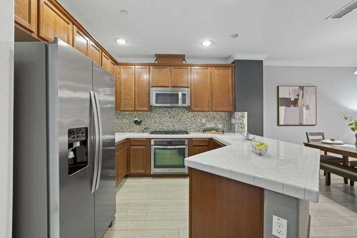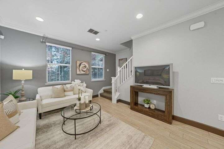 Charming townhouse style condo located just moments from the vibrant Santana Row and Westfield Valley Fair! This inviting home offers a stylish open floor plan with elegant laminate flooring throughout the main living areas. The kitchen serves as the heart of the home, featuring tile countertops, sleek cabinetry, matching laminate floors, and stainless steel appliances. A main-level bedroom and full bath make a perfect space for guests or a home office. Upstairs, the spacious primary suite provides a relaxing escape with dual sinks, a glass-enclosed shower, and a generous walk-in closet. You'll also find a junior suite with its own private bathroom and a convenient laundry room on the same level. Enjoy year-round comfort with central heating and air conditioning, along with a 2-car tandem garage. Ideally situated within walking distance to popular shops, restaurants, entertainment, gyms, and Frank M. Santana Park. Close to major employers like Apple and Nvidia, with quick access to highways 280, 880, and Caltrainmaking commuting effortless!