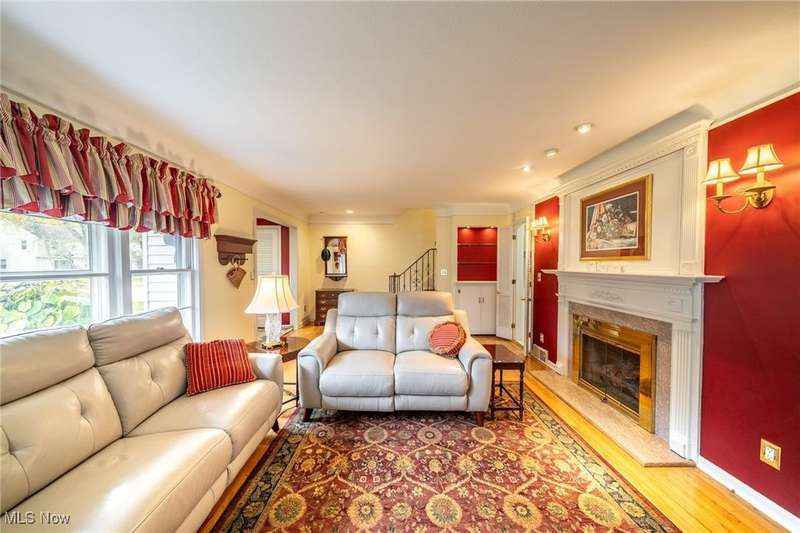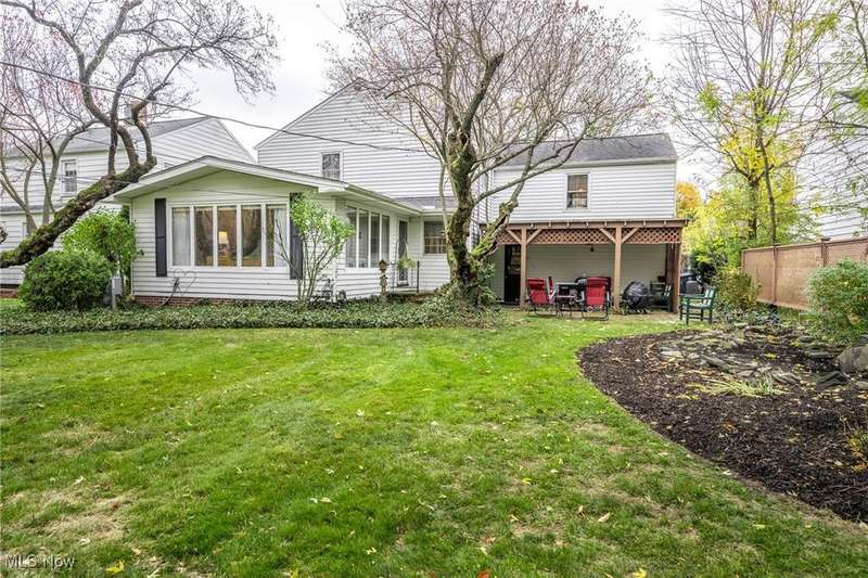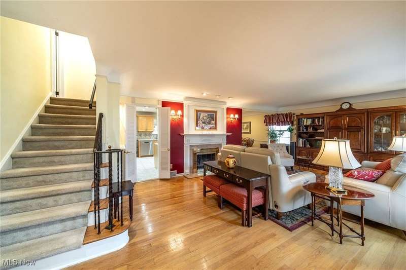 Welcome to this inviting & meticulously maintained four-bedroom, two-and-a-half-bath traditional colonial that blends classic charm with modern comfort. Hardwood flooring flows throughout much of the home, complemented by built-ins & warm architectural details. The light-filled living room features a large picture window & gas burning fireplace that flows seamlessly into the formal dining room. An eat-in kitchen with stainless steel appliances offers a comfortable work space for the resident chef & convenient gathering area with a built-in breakfast nook. The large family room addition features vaulted & beamed ceilings with three walls of windows & access to the private landscaped backyard with a covered patio and fish pond, perfect for large family gatherings or simply relaxing with a good book. A half bath & direct access to the 2 car attached garage offers additional convenience. Ascending to the second floor you will find a thoughtful layout that provides for a separate, tranquil primary suite with an abundance of closet space and a spacious en-suite. Three additional ample size bedrooms and a second full bathroom completes the second level offering plenty of space for a large family, guests, or extra room to accommodate a home office. The partially finished basement provides the flexibility for use as a rec/media room, workout room or play area with access to the large laundry/utility room. Fantastic location, less than a half a block from the Lyndhurst Community Center, where residents can take advantage of wonderful amenities including a party room, fenced playground area, tennis courts, and an in-ground swimming pool. This well-cared-for home offers space, character, and an unbeatable location?ready for you to make it your own. (HWF is available below all carpeted areas except family room).
