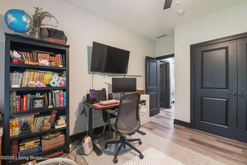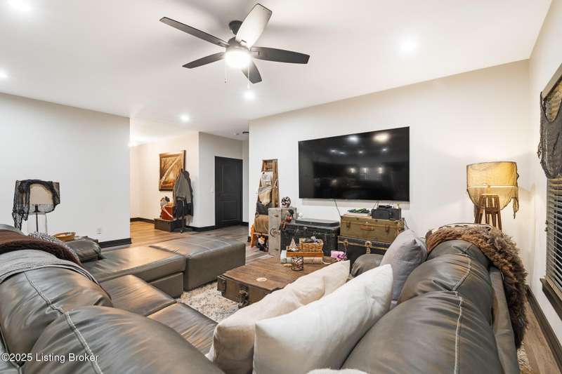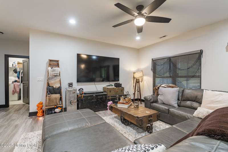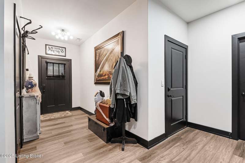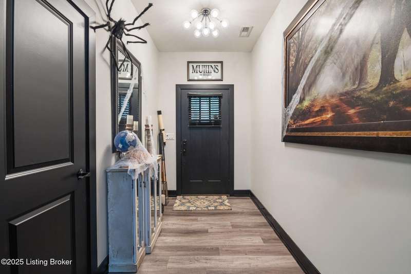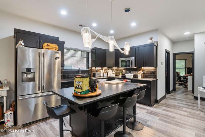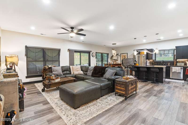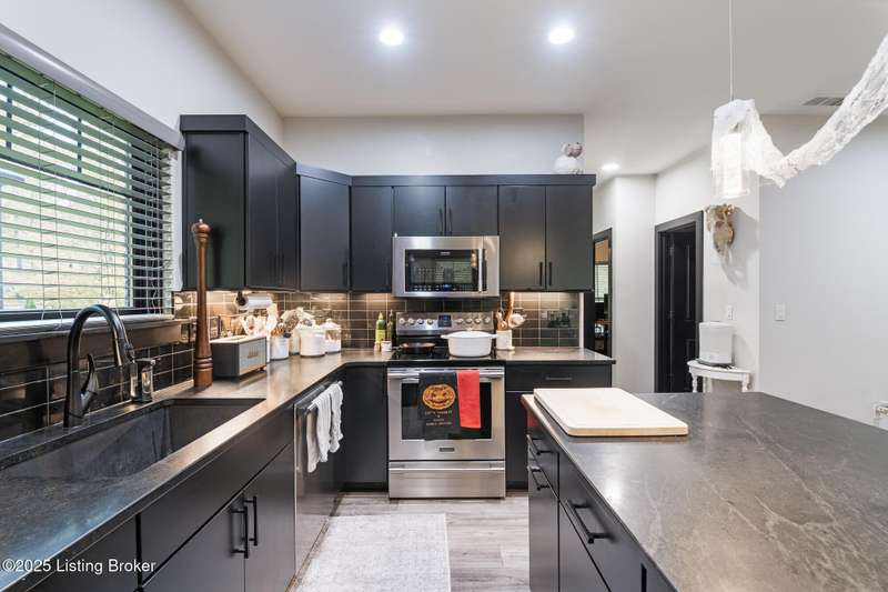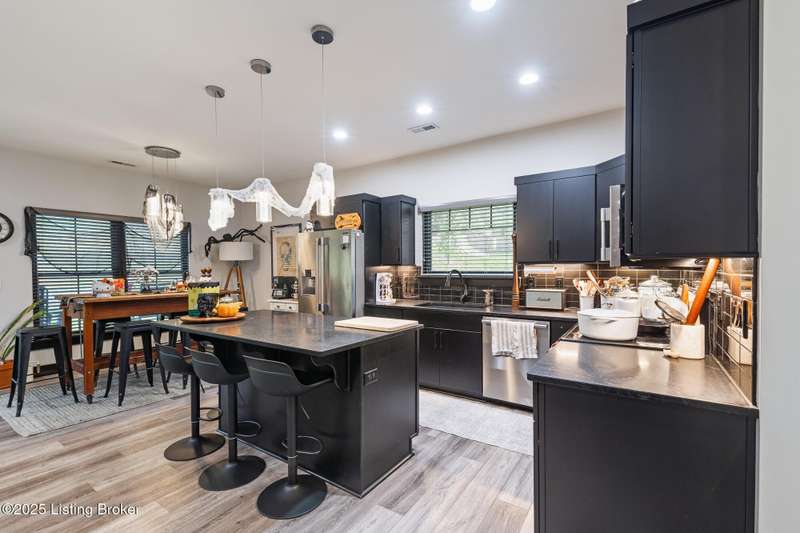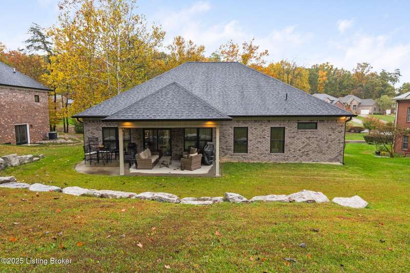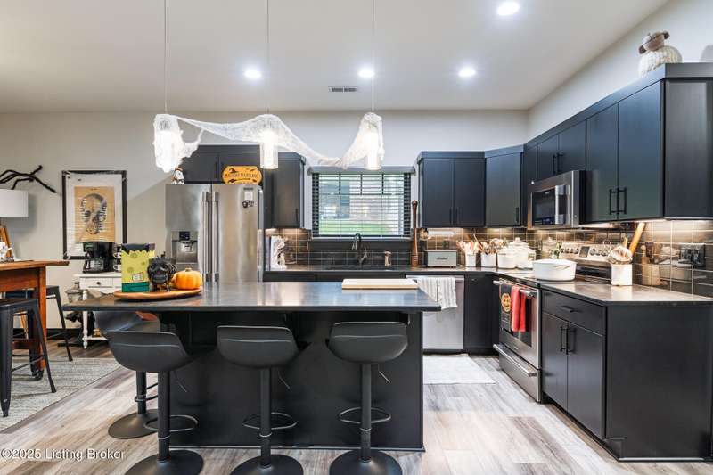 Location, location, location! This beautiful, move-in ready custom home offers the perfect blend of modern comfort and convenience. Nestled in the quiet Wooded Valley neighborhood, you're just one mile from all the shopping, dining, and amenities along State Street in New Albany, and less than a mile from I-265 for easy commuting. Step inside to discover a bright, open-concept layout filled with natural light. The kitchen features sleek black cabinets, modern finishes, and spacious countertops, opening seamlessly to the living and dining areas - ideal for entertaining or relaxing. A sliding glass door leads to a covered back patio, perfect for outdoor dining or enjoying your peaceful surroundings. With an energy-efficient design, ample storage, and stylish details throughout, this home offers both beauty and practicality. Enjoy the perfect balance of convenience and tranquility - schedule your private showing today!