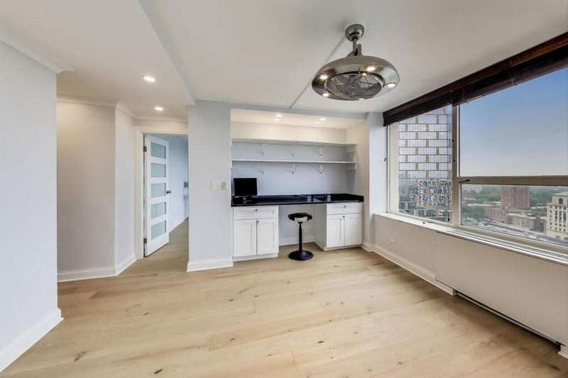 Stunning South-East corner unit with a million dollar view! Amazing Hyde Park location situated on a quiet street with nice trees and pride of ownership on block. Spacious 2bed/2bath with abnormal sized den/office that has potential to be a 3rd bedroom! Tons of upside with this floor plan. Owner has opened up the kitchen to create the ultimate open kitchen concept. The front room allows for a great entertaining space w/ fantastic light from every window and in all rooms. Closet space is not an issue with 20E - custom closets are offered including a walk-in closet in the primary bedroom. Gorgeous quartz waterfall countertop for entertaining Viking and sub-zero appliances round out your kitchen. European French Oak hardwood flooring in beautifully renovated condo Lake Michigan, Harold Washington Park, and the Hyde Park neighborhood. Indoor parking is available. On-site management, door staff, receiving room, exercise room, outdoor swimming pool, hospitality room. Excellent location just steps to groceries, shopping, the metra, Lake Michigan, Lakefront Trail, the University of Chicago, and everything Hyde Park has to offer.