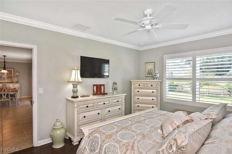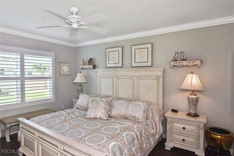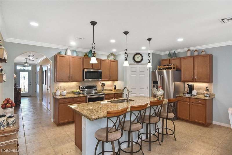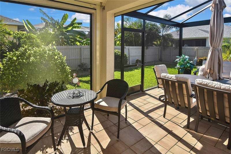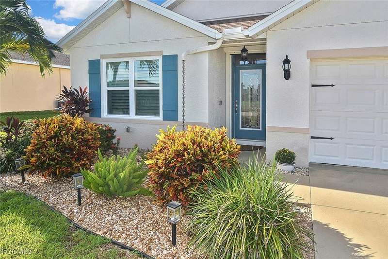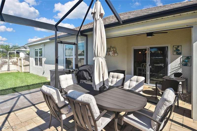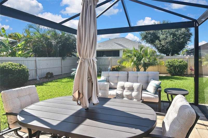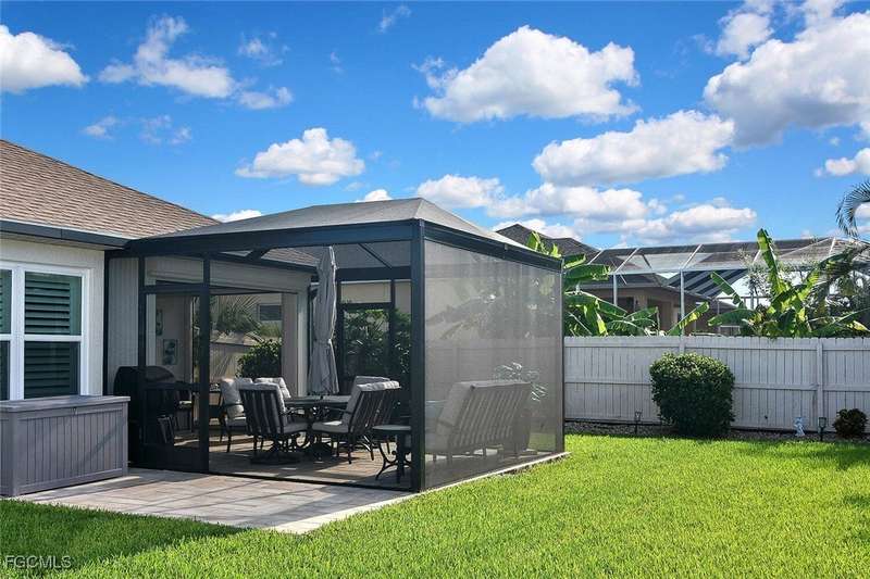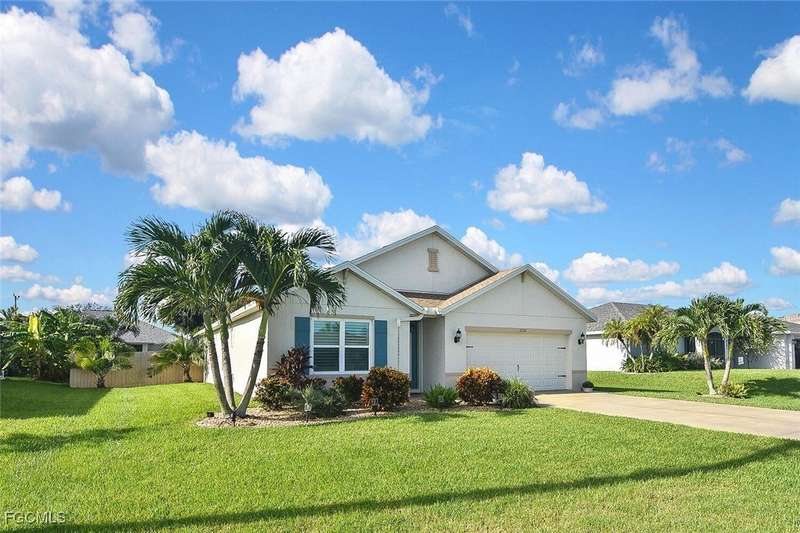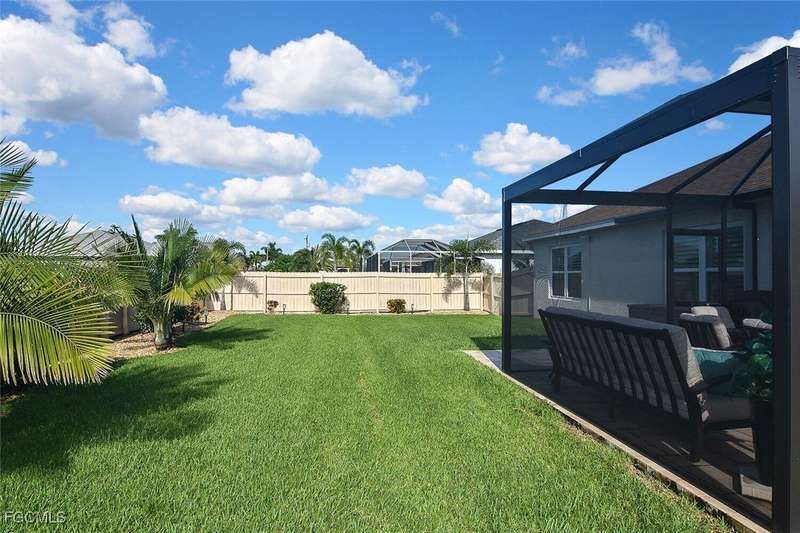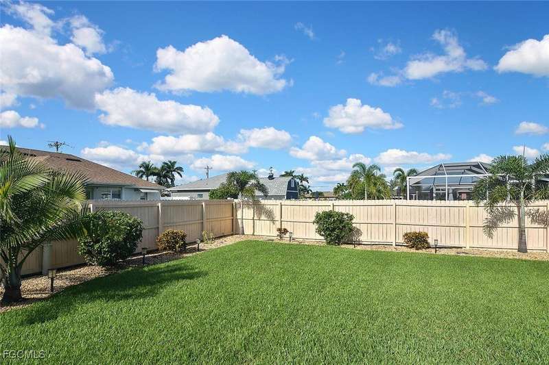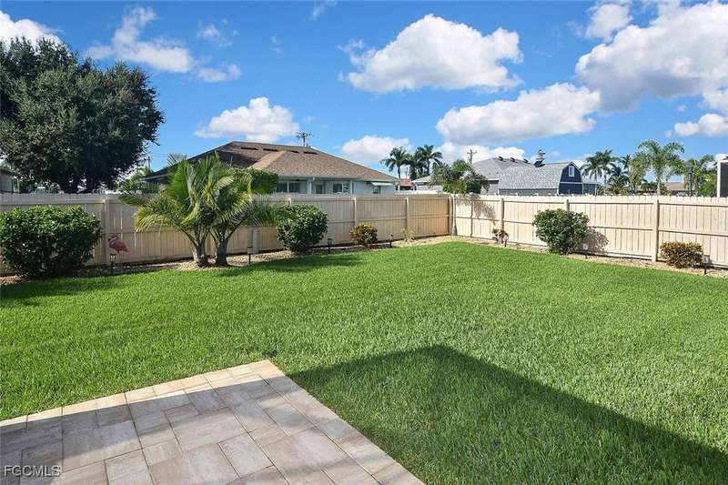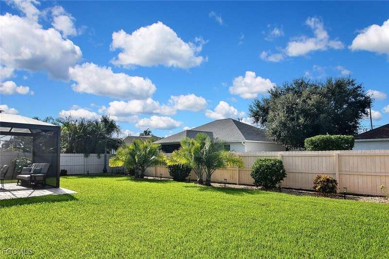 STUNNING 4 BEDROOM, 2 BATH HOME Located in much desired South West Cape Coral. Welcome to this beautifully upgraded single-family home that blends style, comfort, and peace of mind. Designed with an open floor plan, this home is perfect for both everyday living and entertaining. Custom cut-glass entry door, tile flooring in main living areas, luxury vinyl flooring in bedrooms, crown molding throughout, hi impact slider and windows, new roof, plantation shutters on all windows and slider, extended screened Lanai with paver flooring, ceiling fans in each bedroom and Great Room, Storm Smart roll down storm screen on Lanai and entry, fenced park-like yard, and beautiful landscaping are just some of the special upgrades you'll find in this home. The Kitchen features stainless appliances, wood cabinetry, granite counters, custom backsplash, walk-in pantry, and large island and flows seamlessly into the Dining and Living areas. This is the perfect place for entertaining family and friends. Glass slider from the Great Room leads to the extended screened Lanai with paver flooring. The Lanai overlooks the fenced park-like yard and has plenty of room for a future pool. The Primary Suite is a luxurious retreat and has a large walk-in closet. The Primary Ensuite' has a double sink vanity, glass enclosed shower, private water closet, and spacious linen closet. Each of the Guest Bedrooms have large closets and are conveniently located in close proximity to the Guest Bath. One of the 3 Guest Bedrooms is currently being used as an office/sitting room, but has a large closet and can be used as a bedroom. The choice is yours. The Guest bath has a tub/shower combination and new wood vanity. This special home has it all, beautiful finishes, thoughtful upgrades, and inviting indoor/outdoor spaces designed for enjoyment. Don't miss the chance to make it yours. Schedule your showing today!!