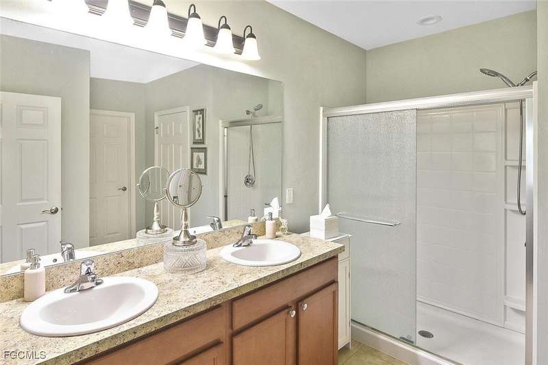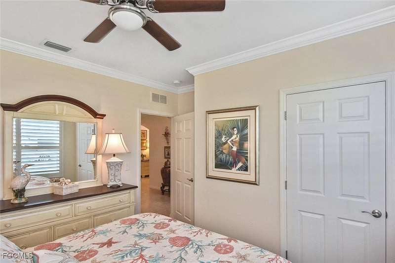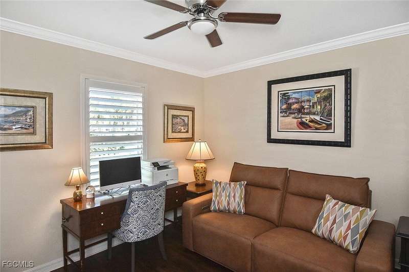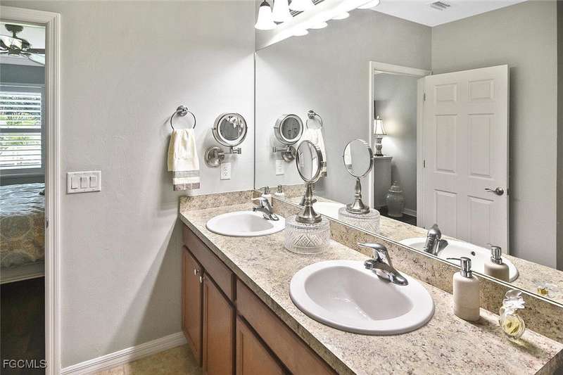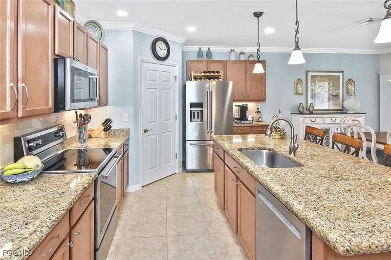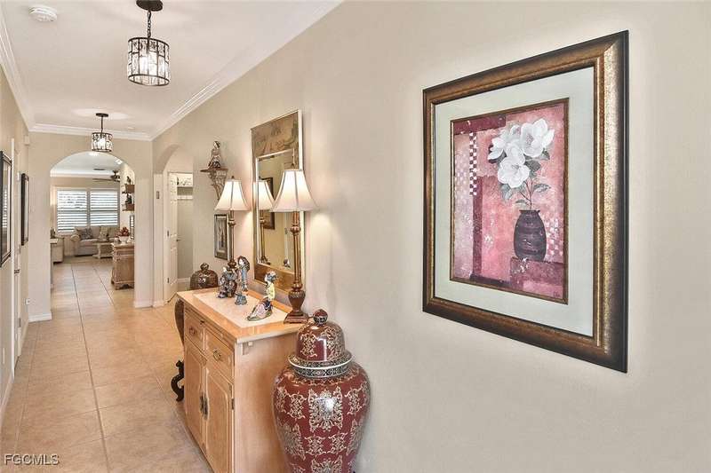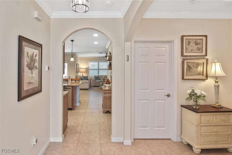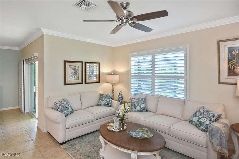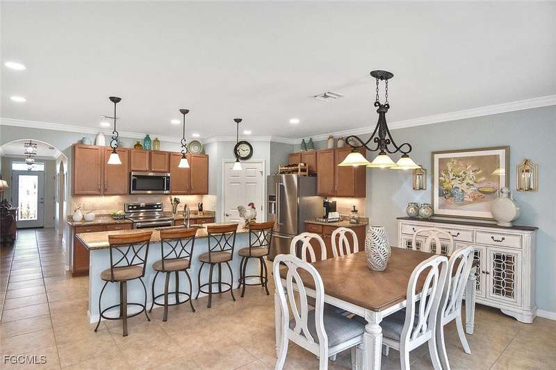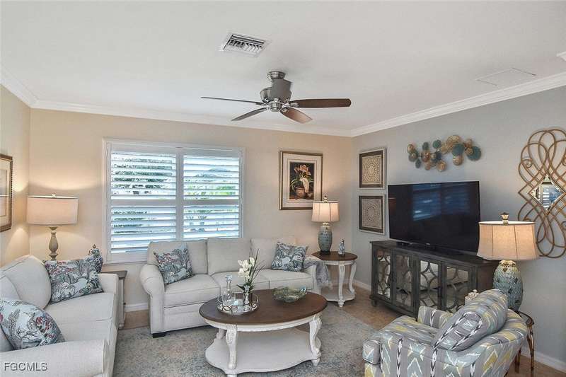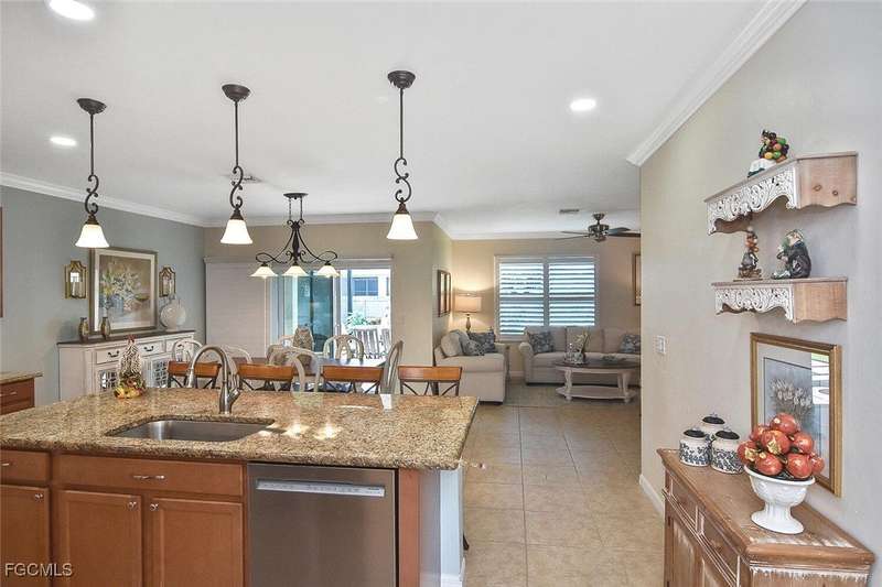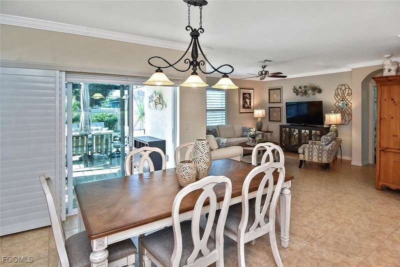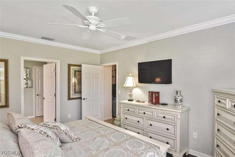 STUNNING 4 BEDROOM, 2 BATH HOME Located in much desired South West Cape Coral. Welcome to this beautifully upgraded single-family home that blends style, comfort, and peace of mind. Designed with an open floor plan, this home is perfect for both everyday living and entertaining. Custom cut-glass entry door, tile flooring in main living areas, luxury vinyl flooring in bedrooms, crown molding throughout, hi impact slider and windows, new roof, plantation shutters on all windows and slider, extended screened Lanai with paver flooring, ceiling fans in each bedroom and Great Room, Storm Smart roll down storm screen on Lanai and entry, fenced park-like yard, and beautiful landscaping are just some of the special upgrades you'll find in this home. The Kitchen features stainless appliances, wood cabinetry, granite counters, custom backsplash, walk-in pantry, and large island and flows seamlessly into the Dining and Living areas. This is the perfect place for entertaining family and friends. Glass slider from the Great Room leads to the extended screened Lanai with paver flooring. The Lanai overlooks the fenced park-like yard and has plenty of room for a future pool. The Primary Suite is a luxurious retreat and has a large walk-in closet. The Primary Ensuite' has a double sink vanity, glass enclosed shower, private water closet, and spacious linen closet. Each of the Guest Bedrooms have large closets and are conveniently located in close proximity to the Guest Bath. One of the 3 Guest Bedrooms is currently being used as an office/sitting room, but has a large closet and can be used as a bedroom. The choice is yours. The Guest bath has a tub/shower combination and new wood vanity. This special home has it all, beautiful finishes, thoughtful upgrades, and inviting indoor/outdoor spaces designed for enjoyment. Don't miss the chance to make it yours. Schedule your showing today!!