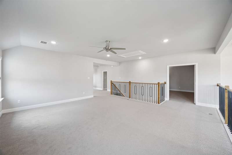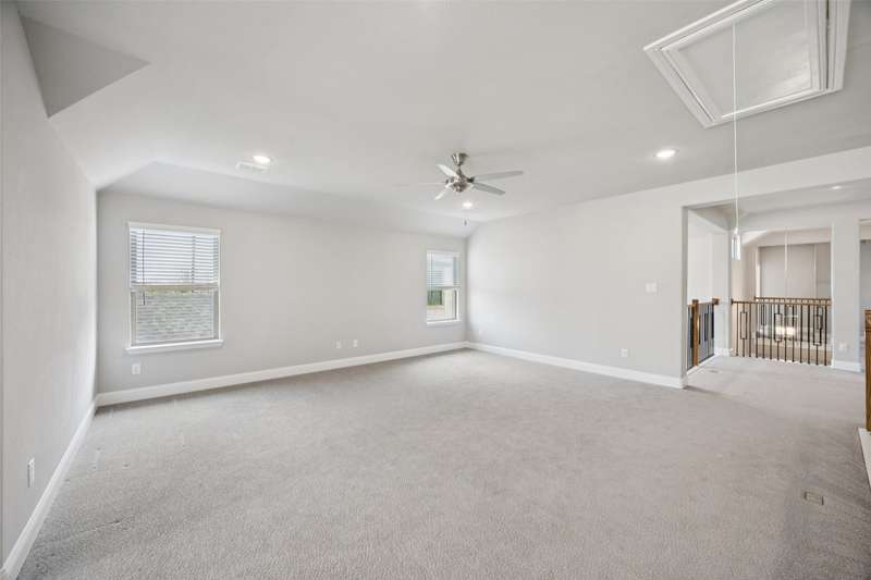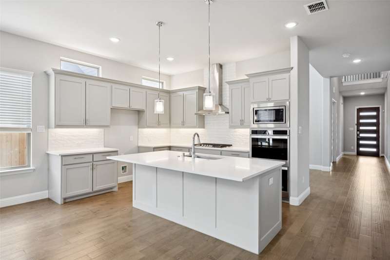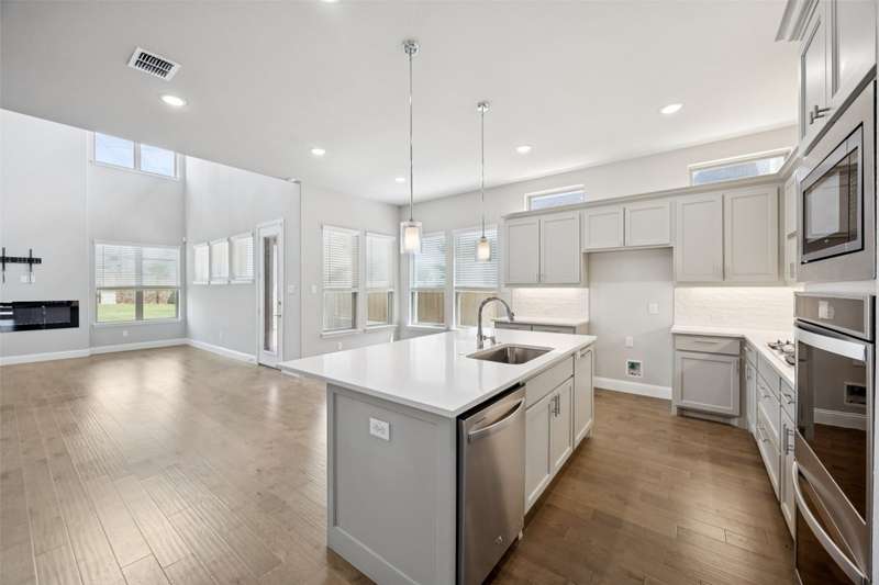 This stunning modern 5-bedroom home is an architectural marvel, offering a spacious open floor plan designed to maximize natural light and seamless living. Upon entry, you're welcomed by soaring ceilings that create an airy, expansive atmosphere. Oversized windows in the living room flood the space with sunlight and frame a sleek, contemporary fireplaceperfect for both relaxation and entertaining. The homes neutral wall tones provide a versatile backdrop, ready to complement any style of dcor. A smooth flow from the living area into the breakfast room creates an ideal layout for gatherings, with ample space for a large dining table. The gourmet kitchen features stainless steel appliances, an expansive quartz island with bar seating, and an abundance of modern cabinetry that offers both style and practical storage. A generous walk-in pantry keeps everything organized and within reach.The main-level guest bedroom is thoughtfully designed with comfort in mind and offers views of the green space. The luxurious primary suite is a true retreat, large enough for a king-sized bed with scenic backyard views. The ensuite bathroom feels both expansive and intimate, showcasing clean lines, a well-planned layout, and a stunning walk-in shower adorned with designer tile. Upstairs, you'll find three well-appointed bedrooms and two full bathrooms, offering privacy & comfort for family or guests. The game and media rooms are vibrant and flexible spacesideal for entertaining, relaxing, or enjoying an immersive movie night. This backyard is an entertainers dream. It stretches out far & wide, with a sprawling lawn that's perfect for everything from sports & picnics to simply relaxing in the sun. Whether you're envisioning a large pool, a putting green, or space for outdoor activities like a volleyball court or playset, this lot has more than enough room to make it happen. Located minutes from premier shopping, dining, and entertainment options-this home truly has it all.