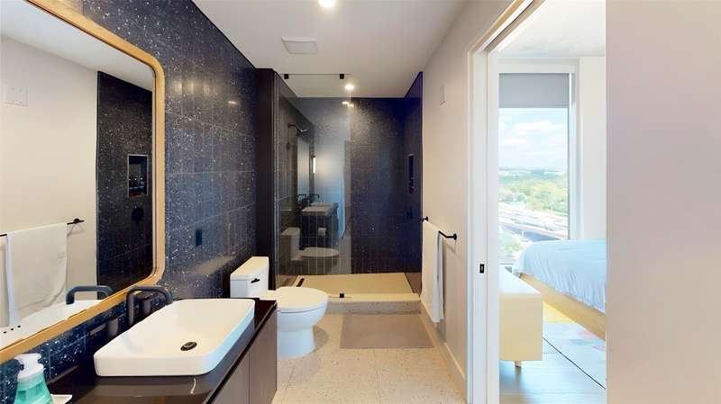 This is your chance to live in one of the newest contemporary condos beautiful downtown Austin has to offer. A block away from some of the best nightlife in Austin. Very close to Lady Bird Lake and easy access to I35. This condo has all the world class ammenties you could ask for , rooftop pool , shaded cabanas , pool side lounge chairs ,roof top fire place , sky line views , water views , 24 hour concierge service , state of the art fitness center , yoga studio , Pelaton studio , business center , coffee bar , outdoor terrace and garden , 24 hour valet , keyless entry , bike storage , dog run and even a pet washing station. As you walk into the unit you will notice the high ceilings , floor to ceiling windows and high end finishes throughout. This unit is the largest one bedroom condo Natiivo has to offer. The open floor plan and abundance of natural light gives the feel of a very large unit. The kitchen is complete with stainless steel appliances , stone counter tops and dark wood cabinets. The configuration of the living and dinning areas provides plenty of seats and room for large get togethers. The patio off the living room provides panoramic views of downtown Austin and Lady Bird Lake. This unit will not last long!!! The unit comes fully furnished and lock and leave ready for your short term rental guests. YES , THIS IS ONE OF THE FEW NEW HIGH RISES THAT ALLOW SHORT TERM RENTALS!!! The owners have the flexibility to self manage or use their own rental company. PLEASE VIEW THE 3D TOUR LINK - https://my.matterport.com/show/?m=tk9Qx2vm9BF&mls=1