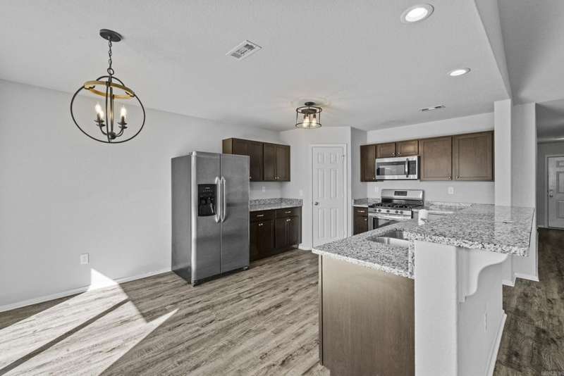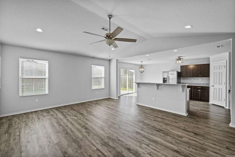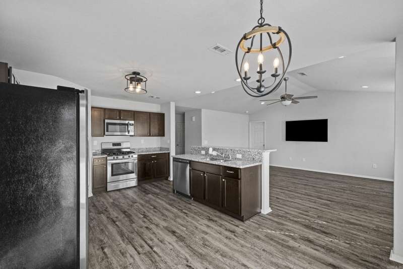 Welcome Home to this charming split-bedroom floor plan featuring an open concept design with modern finishes throughout. The upgraded Rausch Coleman package includes a gas range, granite countertops, updated light fixtures, and an extended back patio-perfect for entertaining or relaxing.Energy efficiency shines with solar panels, other feature includes a switch controlled attic ventilation system. Enjoy the privacy-fenced backyard situated on a nice sized lot, offering plenty of space for outdoor activities. This home is ideal for First-time buyers or anyone looking for a well maintained, move- in-ready home with quality upgrades. Conveniently located. Take a look today. See agent remarks.