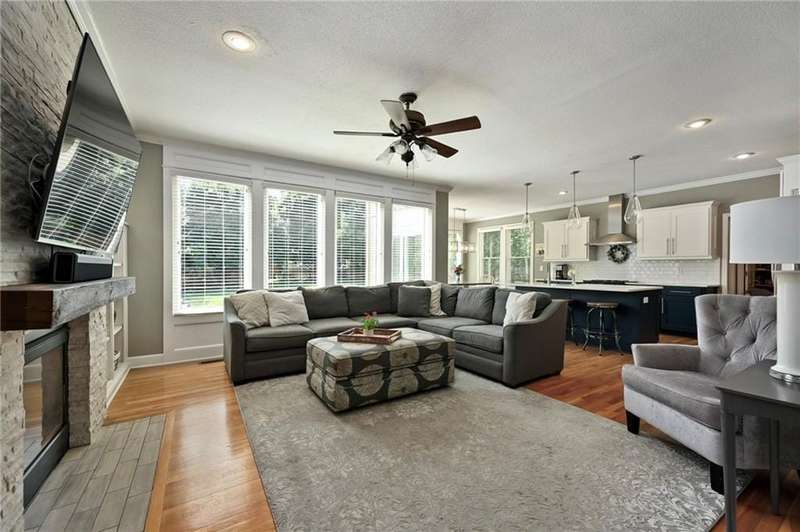 Fantastic rare 6 bedroom, with beautiful updates all around, all on one of the largest lots in the neighborhood! Whether you are enjoying the see through fireplace in the living areas, or sitting at the quartz kitchen island, the main level of this 2 story home is perfection! A large mudroom and flex room sits off the garage entry with a walk in pantry! The wall of windows overlook the big paver patio and expansive fully fenced backyard. Upstairs are 5 bedrooms with brand new carpet, and the laundry room conveniently nearby! The finished basement has great living spaces, a bar, and the 6th bedroom with a full bathroom! Located near schools, Bluhawk shopping and highway access, this home is a stunner!