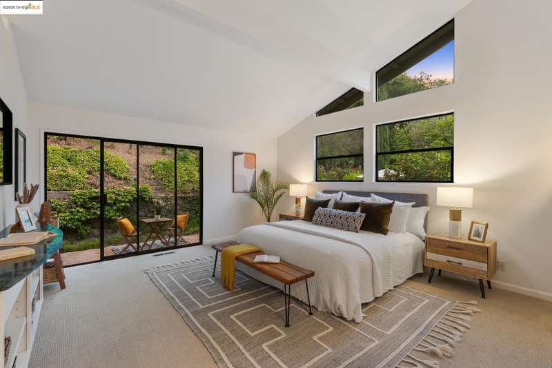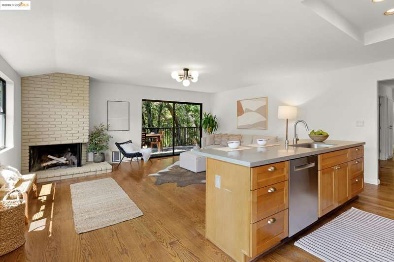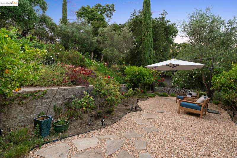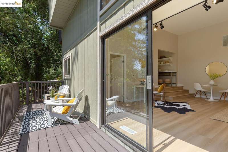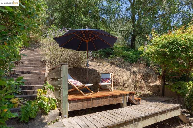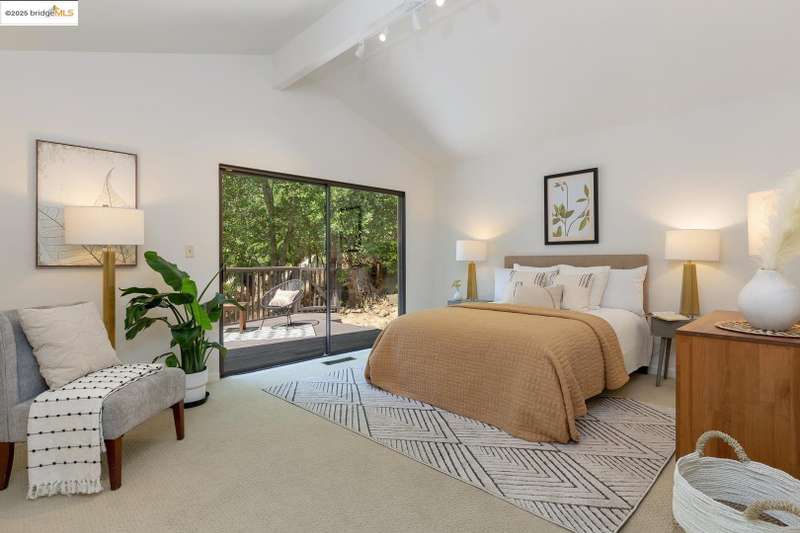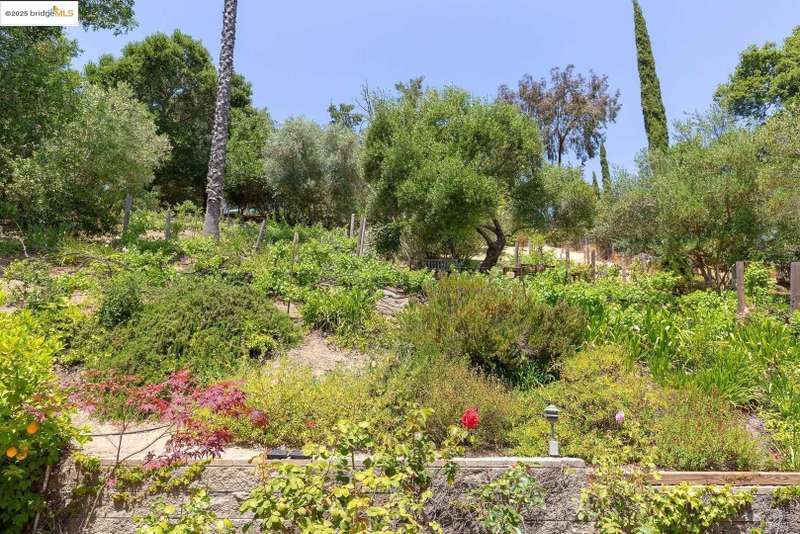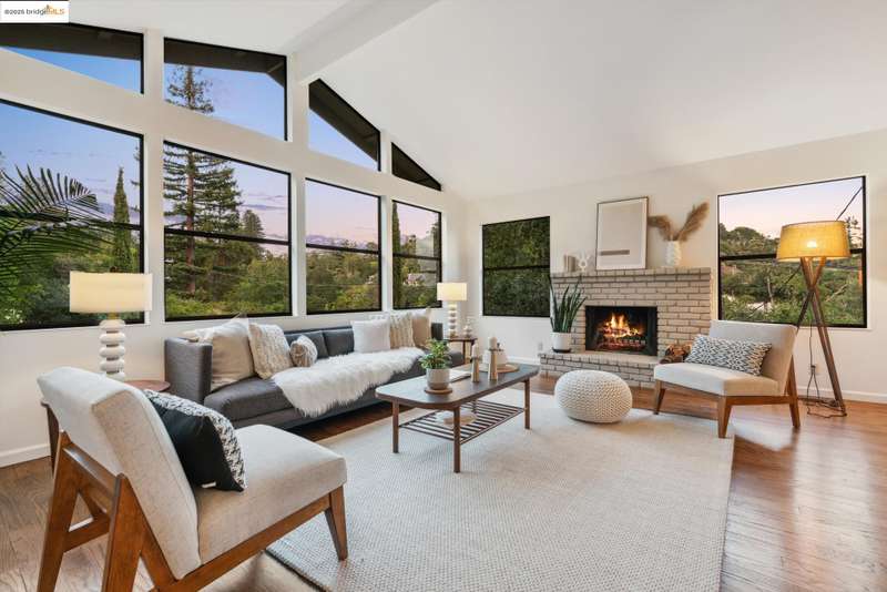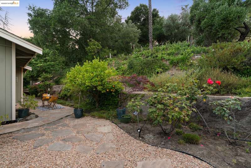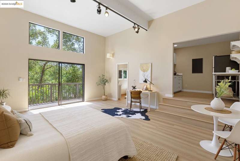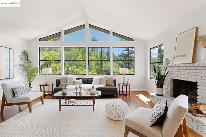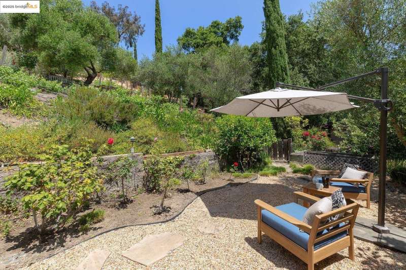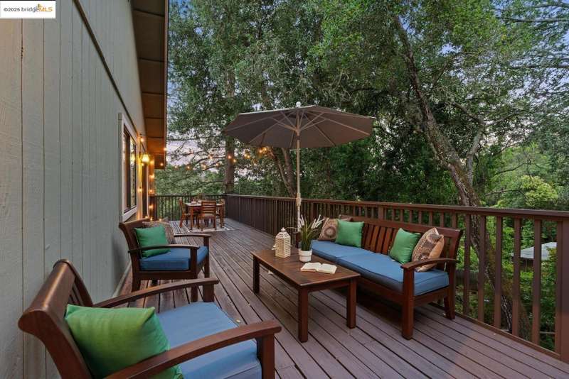 Perched on a serene hillside in Orinda’s coveted Charles Hill neighborhood, this light filled contemporary single-level retreat invites you to live among nature’s finest offerings. A wall of windows frames enchanting verdant views, from the sunlit vineyard to fragrant rose gardens, while soaring ceilings and a brick fireplace add warmth and elegance to the expansive living room. The formal dining room invites casual family gatherings and elegant holiday meals and dinner parties alike. The open flow from the kitchen and family room extends effortlessly to an expansive deck, made for summer meals overlooking your own hillside oasis. A luxurious primary suite provides private patio access for quiet reflection, while three additional bedrooms cater to comfort and versatility. A separate guest studio—complete with private deck, full kitchen, and bath(not included in bed/bath count)—creates endless possibilities for hosting friends, multi-gen living, or dedicated work-from-home space. Surrounded by olive, Meyer lemon, and fruit trees, this sunlit lot feels worlds away, yet you’re just minutes from downtown Orinda, Lafayette’s vibrant amenities, and Orinda’s highly acclaimed schools. Recently refreshed and move-in ready, 151 La Espiral is a home where every day feels like a getaway.