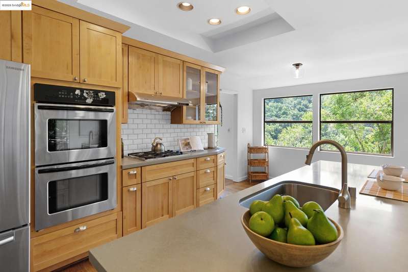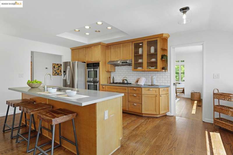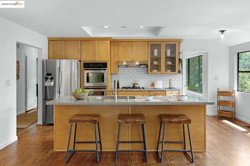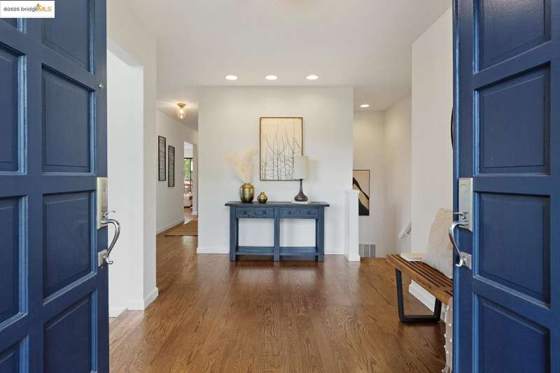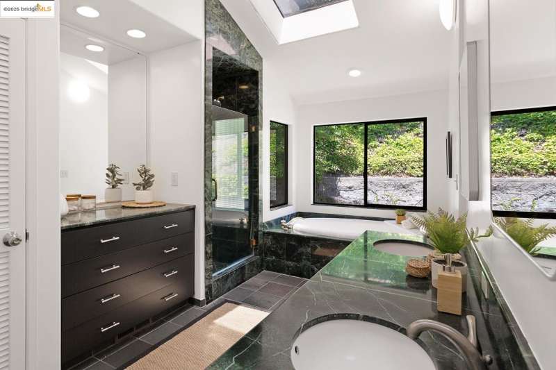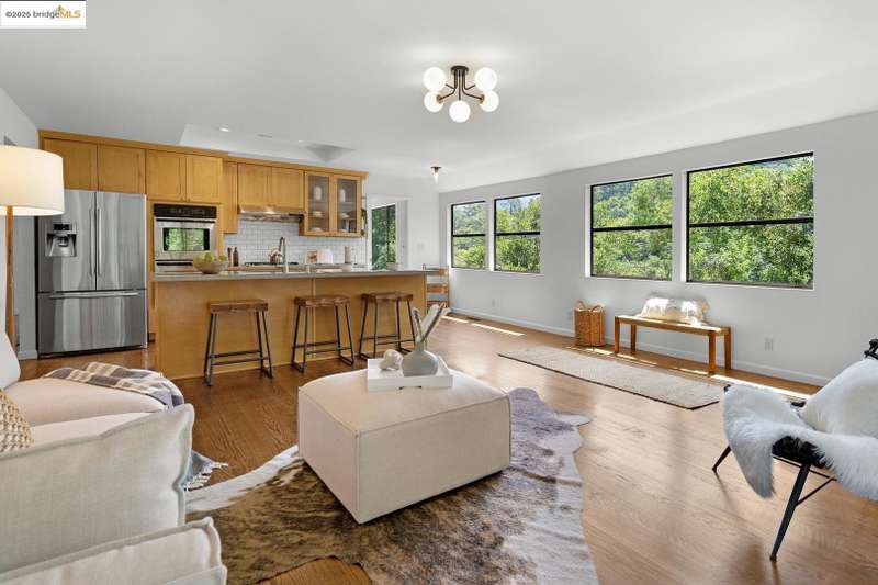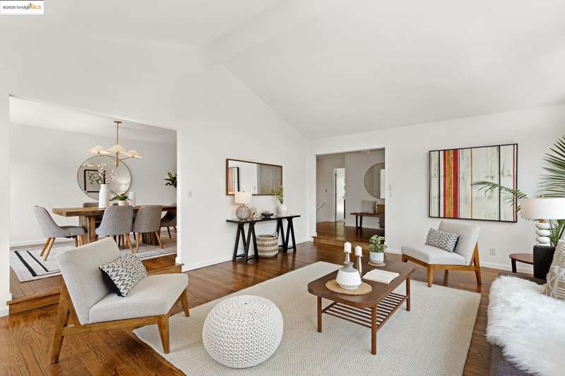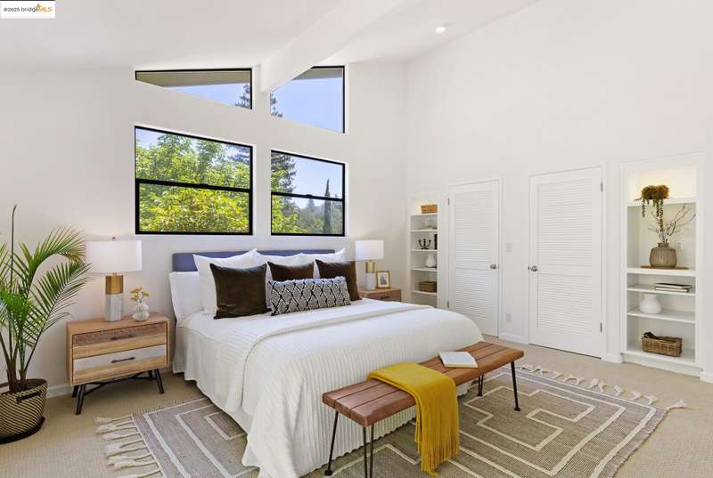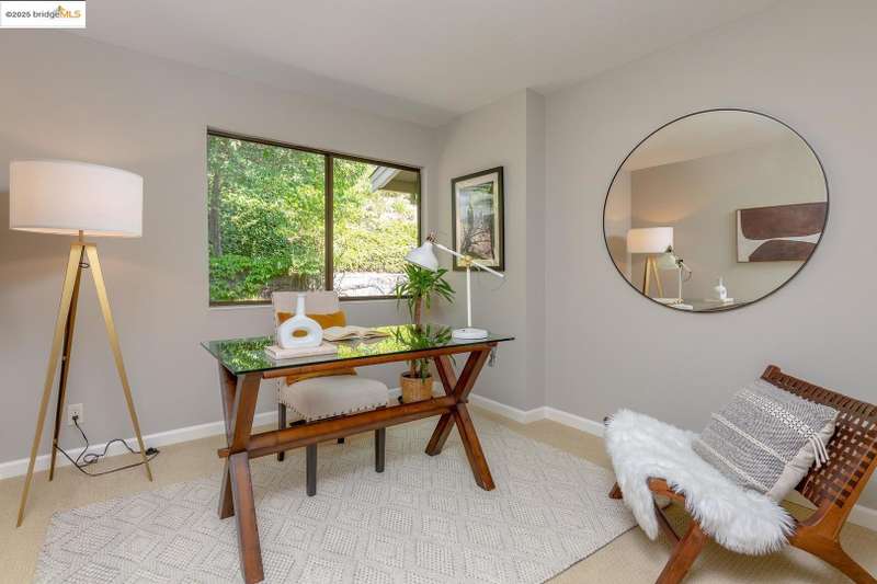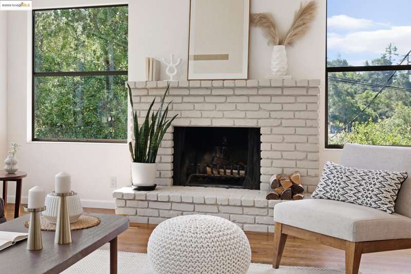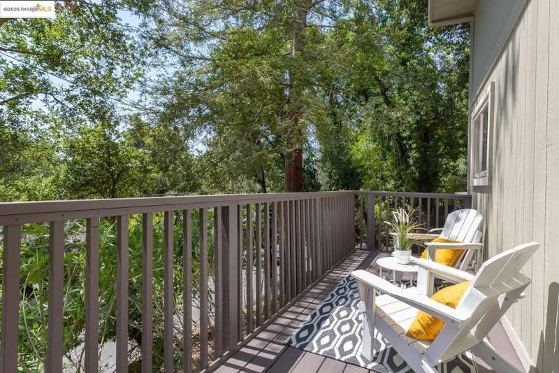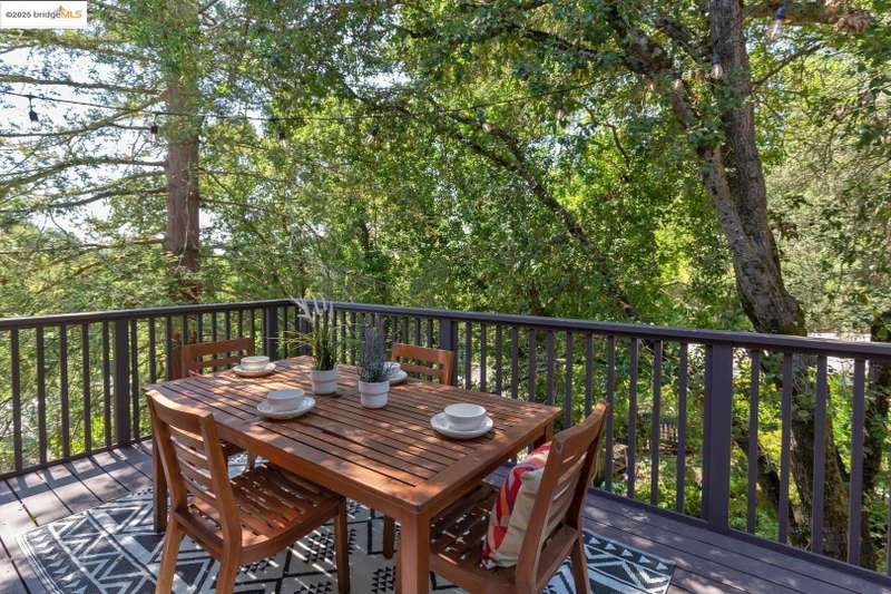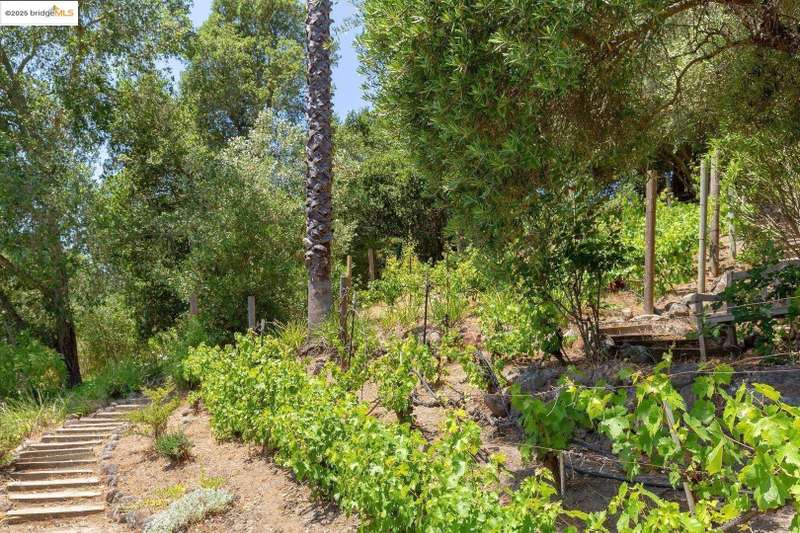 Perched on a serene hillside in Orinda’s coveted Charles Hill neighborhood, this light filled contemporary single-level retreat invites you to live among nature’s finest offerings. A wall of windows frames enchanting verdant views, from the sunlit vineyard to fragrant rose gardens, while soaring ceilings and a brick fireplace add warmth and elegance to the expansive living room. The formal dining room invites casual family gatherings and elegant holiday meals and dinner parties alike. The open flow from the kitchen and family room extends effortlessly to an expansive deck, made for summer meals overlooking your own hillside oasis. A luxurious primary suite provides private patio access for quiet reflection, while three additional bedrooms cater to comfort and versatility. A separate guest studio—complete with private deck, full kitchen, and bath(not included in bed/bath count)—creates endless possibilities for hosting friends, multi-gen living, or dedicated work-from-home space. Surrounded by olive, Meyer lemon, and fruit trees, this sunlit lot feels worlds away, yet you’re just minutes from downtown Orinda, Lafayette’s vibrant amenities, and Orinda’s highly acclaimed schools. Recently refreshed and move-in ready, 151 La Espiral is a home where every day feels like a getaway.