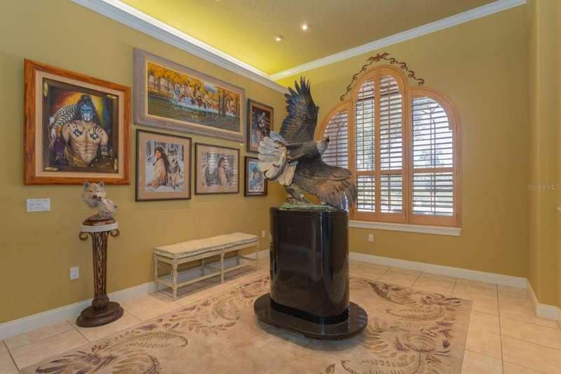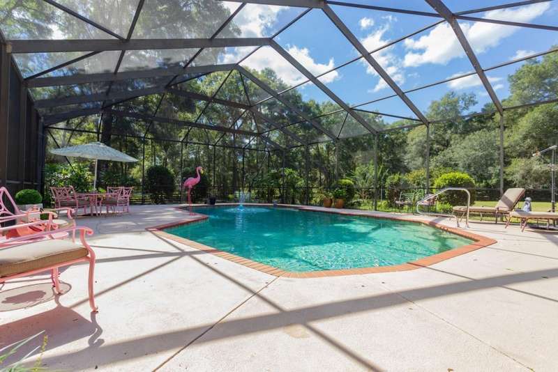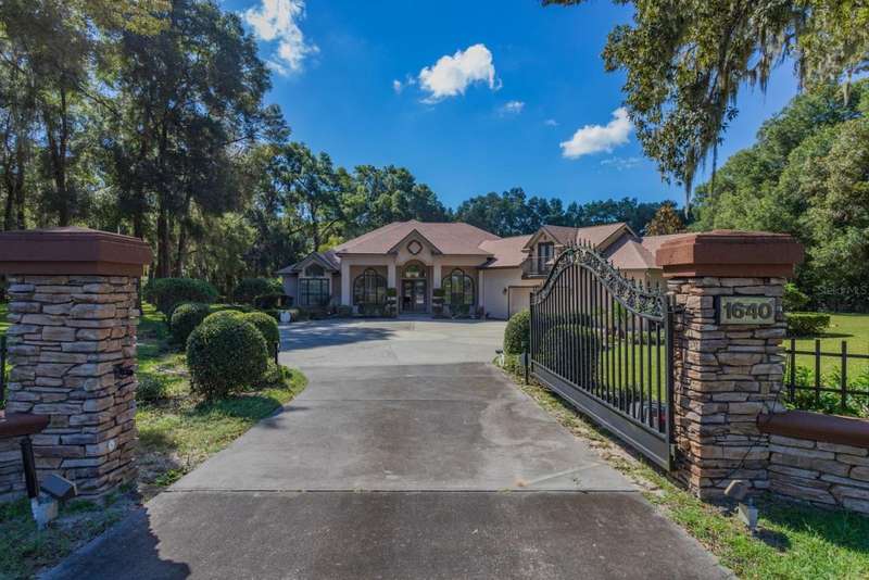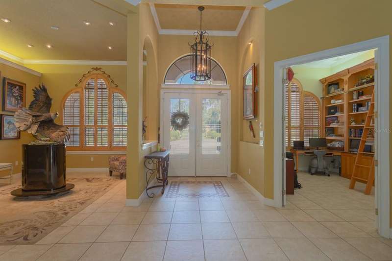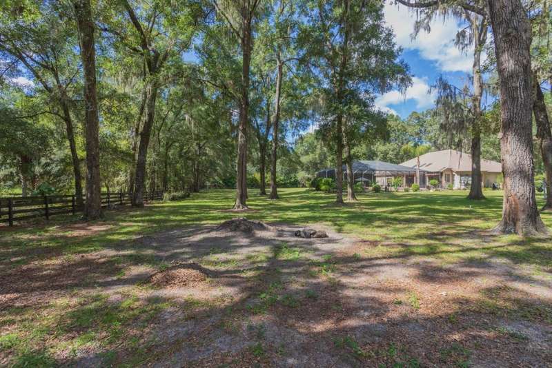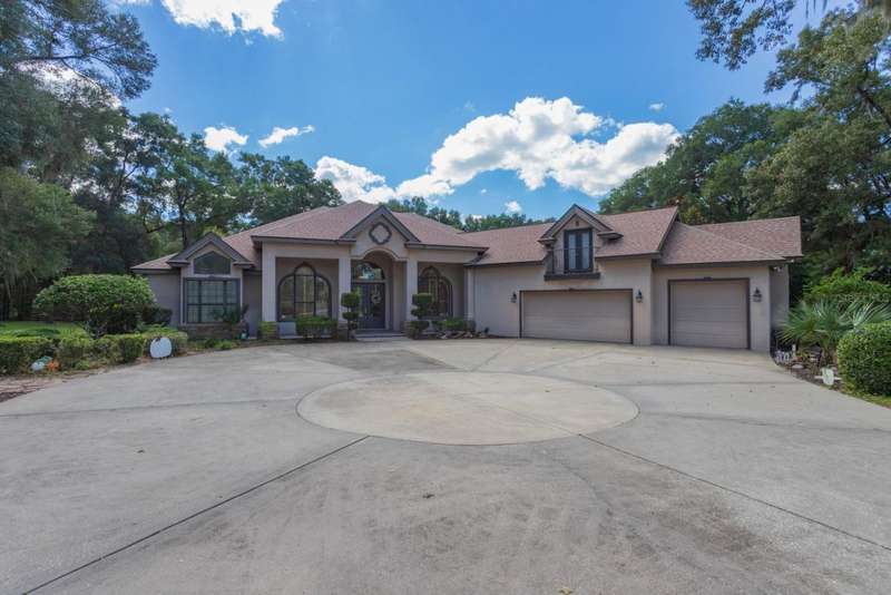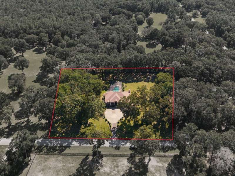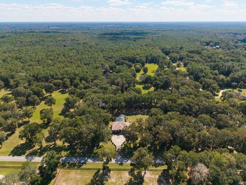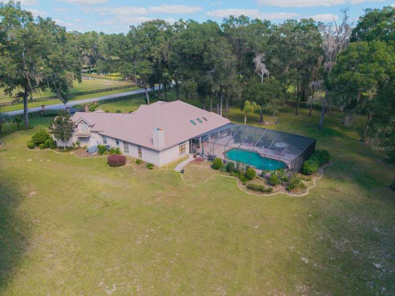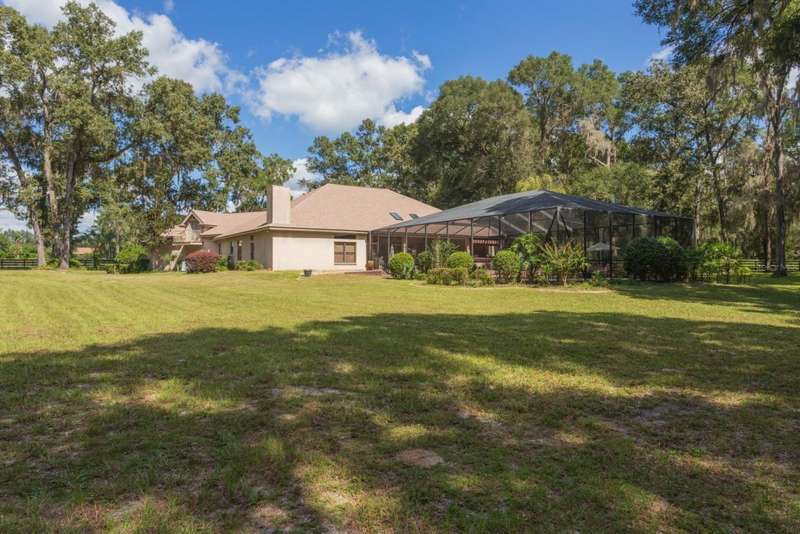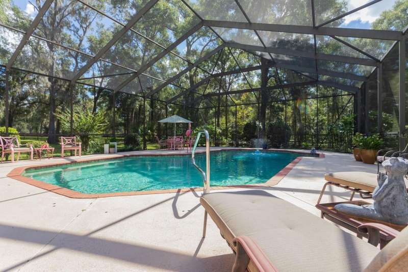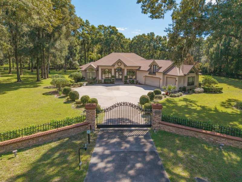 Here is your chance to Own a beautiful pool home in Turning Hawk II, a wonderful equestrian community with access to the Cross Florida Green way for riding, hiking, or biking. This stately home is on 2.2 acres, is fenced and has a automatic ornamental gate at the entrance, a large circular drive, and 3 car garage. You will enter through the double front doors and be greeted with the beautiful formal living and dining rooms, and the library. The center of the home is the cook's dream kitchen, with an island, coffee bar, double ovens, lots of tall warm wood cabinets and granite counters. The kitchen overlooks a large second dining space and a large family room with a cozy fireplace. The primary suite is sure to impress. There are French doors to the lanai, large bay windows and a closet everyone would envy. The on-suite bath is truly luxurious with split sinks, a vanity area, soaker tub and separate shower. The home offers 3 additional bedrooms, and 3 additional baths. The 4th bedroom is located above the garage and could be used as an in-law suite. Bath 3 is a full cabana bath with access to the pool. This gorgeous home has a backyard oasis. You will find the large covered lanai with an outdoor bar that flows seamlessly to the pool deck under a large bird cage. This home was made for entertainment. Roof and 2 ac units replaced in 2023 Call for your home tour today.
