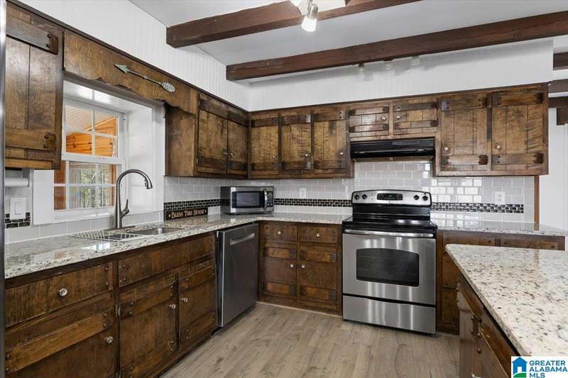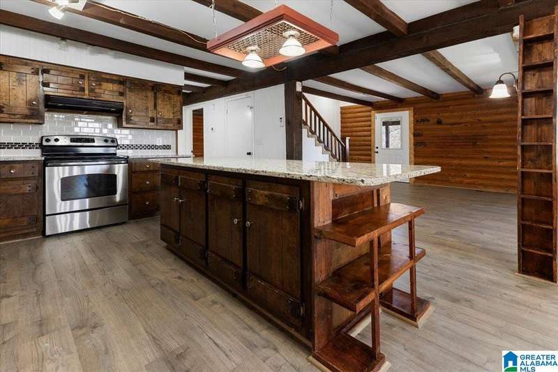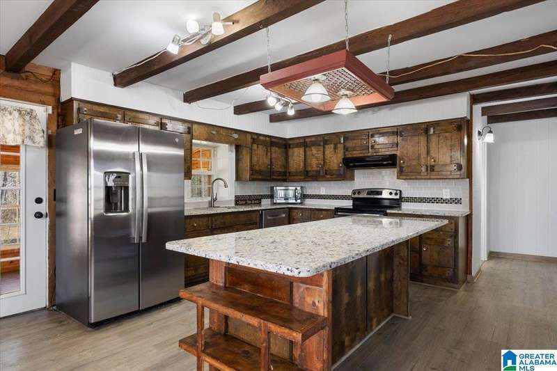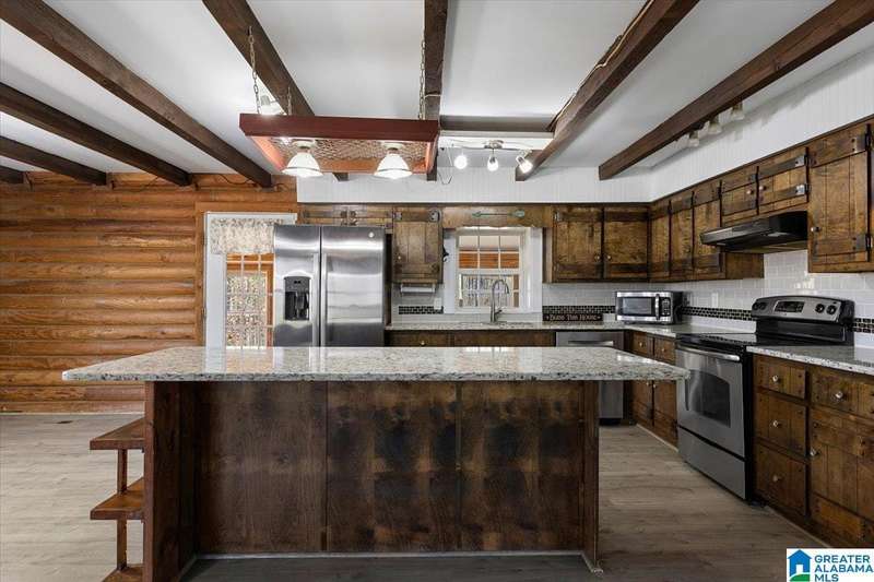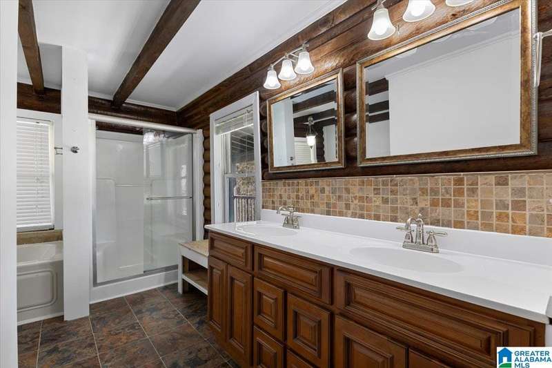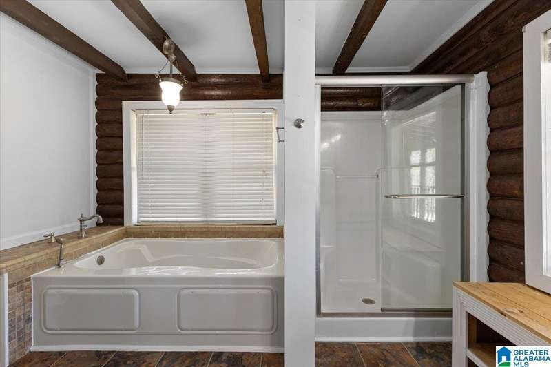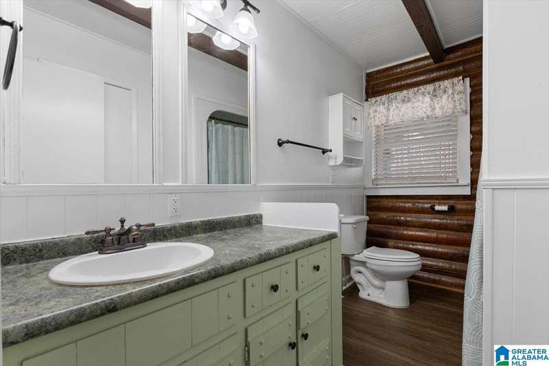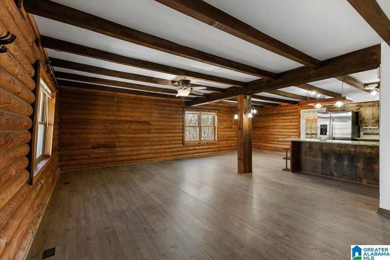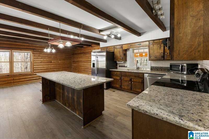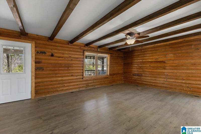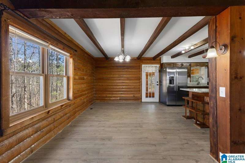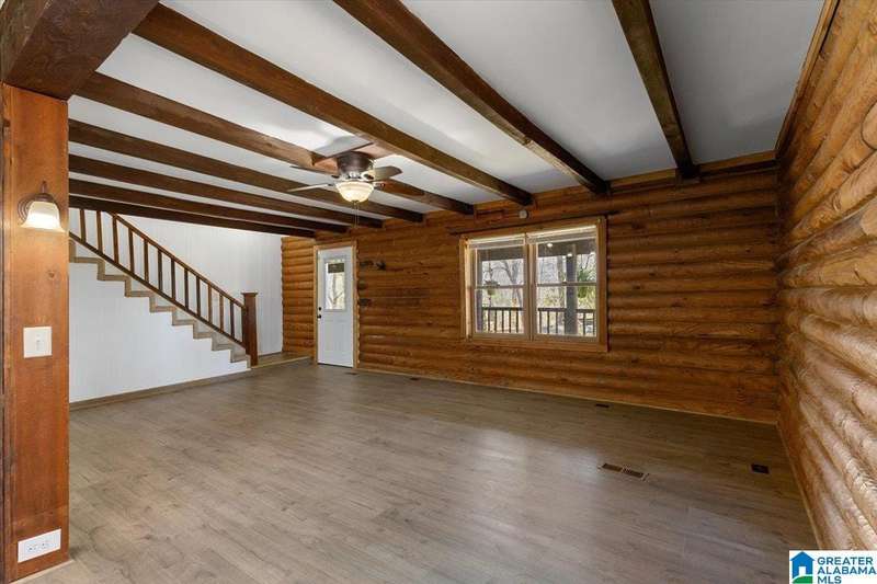 Unique log home with both rustic and modern comforts. This log home is country but close enough to city for convenience. Inside you will find the laminate hardwood and gorgeous wood beams making the living area cozy and comfy. The spacious kitchen with granite countertops allows for a home chef's imagination to come to life with ease. Sunroom or office off the back allows for watching the wildlife and unwinding. Large master on main level with attached master bath. Two large bedrooms upstairs along with full bath allows for a lot of extra room. Unfinished basement has full bath to start your own ideas. Wrap around porch allows for enjoying all the beauty of the mountains and nature. Come see this home with all it's wonderful qualities. Privacy with 7+/- acres.