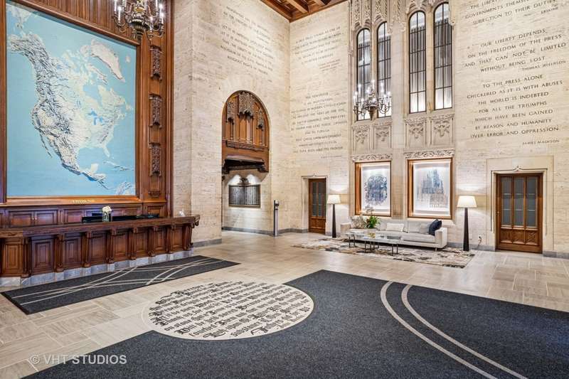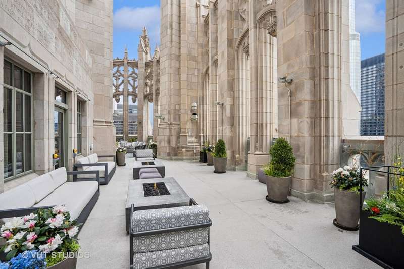 Experience the height of luxury living in this meticulously designed 3,345-square-foot, 3-bedroom, 3.5-bath residence in the legendary Tribune Tower Residences. This extraordinary home combines timeless elegance with modern sophistication, featuring custom millwork and cabinetry, wide-plank oak flooring, and exquisite finishes including marble, quartzite, and designer porcelain tile throughout the kitchen and baths. The gourmet kitchen is equipped with top-of-the-line appliances from Sub-Zero, Wolf, and Miele, perfect for culinary enthusiasts. Thoughtful upgrades by the current owners include custom window treatments, high-end audio/visual systems with invisible speakers, designer lighting, sophisticated paint finishes, and luxurious wall coverings that elevate the space. Each of the spacious secondary bedrooms offers ensuite baths, and the primary suite is a serene retreat. A separate laundry room, abundant storage, and impeccable detailing throughout ensure comfort and convenience. A true highlight of this home is the expansive 1,470+ square foot private terrace-an urban oasis ideal for entertaining or relaxing against the backdrop of Chicago's skyline. Tribune Tower Residences offer over 55,000 square feet of world-class amenities, including: * A 75-foot indoor lap pool * State-of-the-art fitness center with sauna, steam, and spa treatment rooms * Rooftop terrace with grills, dining areas, and lounge seating * Crown terrace with panoramic city views and the tower's iconic flying buttresses * Private, secure dog park * Multiple social lounges and gathering spaces Enjoy peace of mind with 24/7 door staff, on-site management, and a dedicated engineering and maintenance team. Two deeded parking spaces and a private storage locker are included. This is a rare opportunity to own a spectacular home in one of Chicago's most historic and architecturally significant buildings.