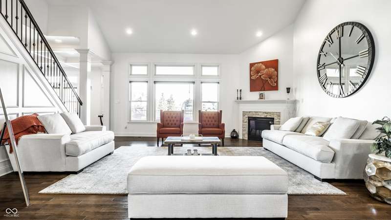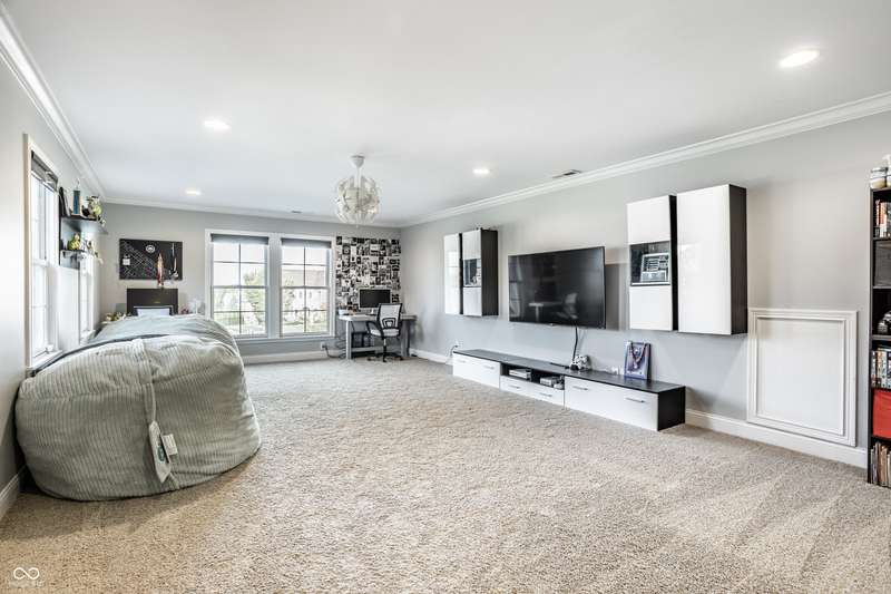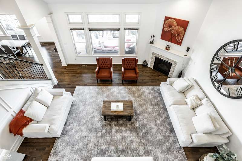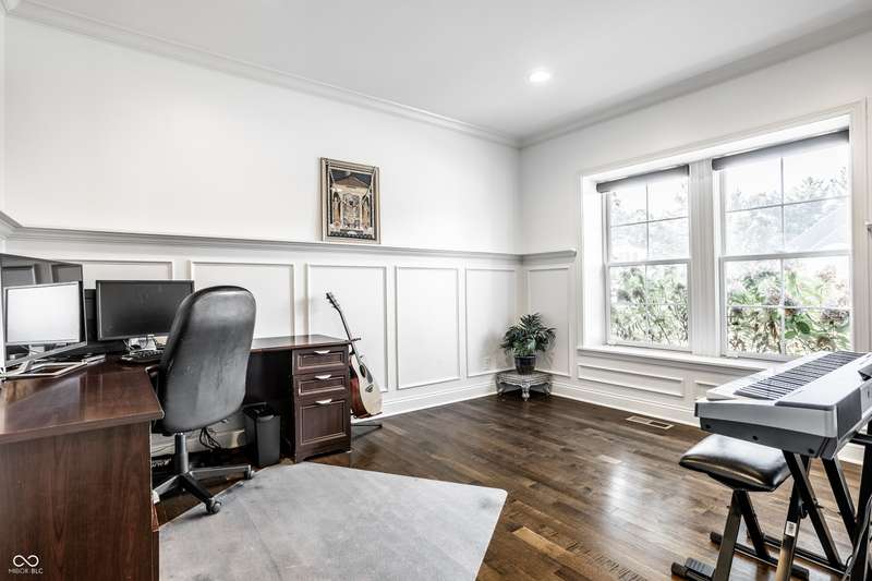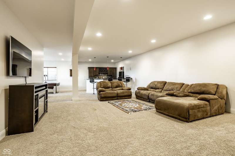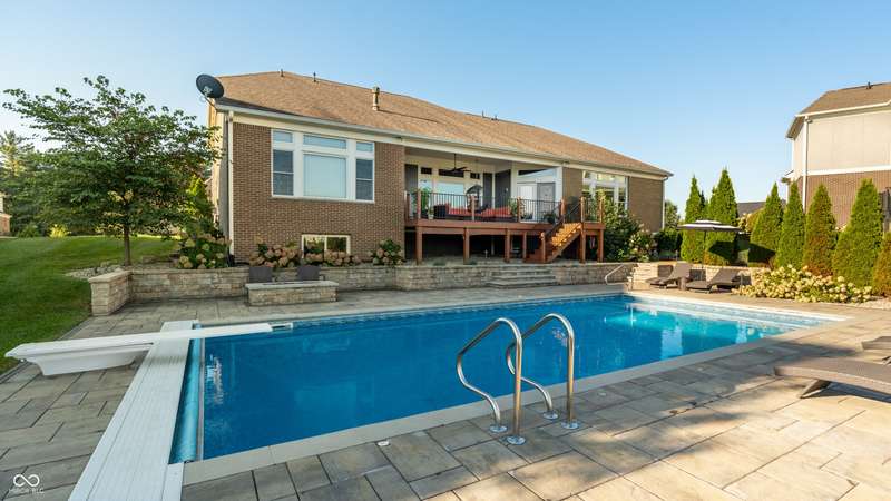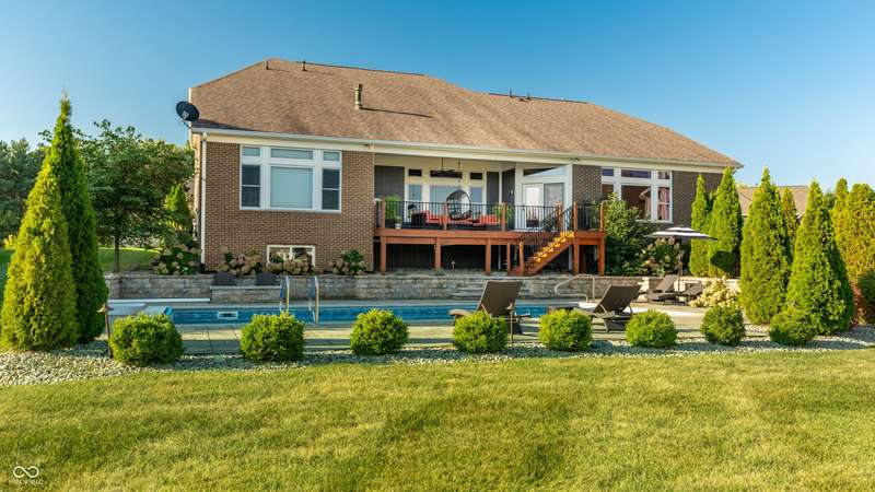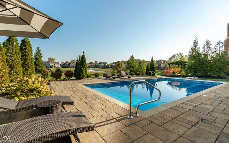 Welcome to this beautifully designed custom home offering 5 bedrooms and 5 baths in the heart of West Carmel. When you step outside, you will find a private outdoor oasis - complete with a sparkling pool, firepit, and stunning pond views - perfect for entertaining or simply enjoying a quiet evening at home. From the moment you step inside, you'll be greeted by a gorgeous entryway with access to the formal dining room and a private office. The main floor features a luxurious primary suite with serene views of both the pool and lake. The spa-like primary bath is filled with natural light and includes a soaking tub, separate shower, and dual walk-in closets. The great room boasts soaring ceilings and flows effortlessly into the gourmet kitchen and cozy hearth room - perfect for everyday living and entertaining alike. Fresh paint throughout gives the home a bright, updated feel. Upstairs, you'll find three spacious bedrooms with abundant natural light, two full baths, and a large loft ideal for studying or play. The finished lower level includes a bar, theater room, an additional bedroom, and plenty of space to relax and unwind. Plenty of storage space as well. We hope you can enjoy the shade of the pool both in the morning and at night. Welcome home!