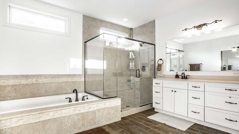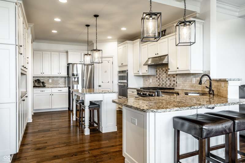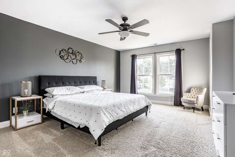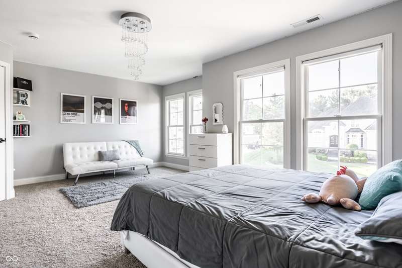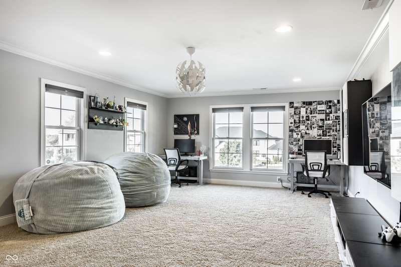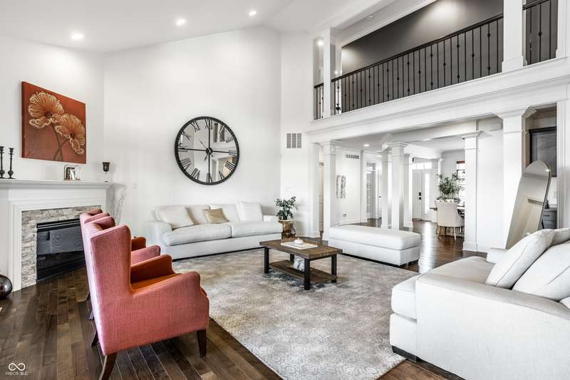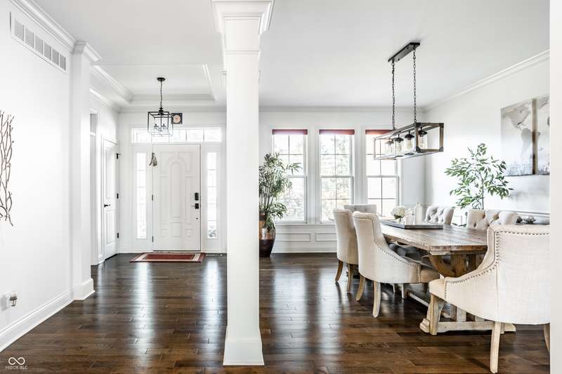 Welcome to this beautifully designed custom home offering 5 bedrooms and 5 baths in the heart of West Carmel. When you step outside, you will find a private outdoor oasis - complete with a sparkling pool, firepit, and stunning pond views - perfect for entertaining or simply enjoying a quiet evening at home. From the moment you step inside, you'll be greeted by a gorgeous entryway with access to the formal dining room and a private office. The main floor features a luxurious primary suite with serene views of both the pool and lake. The spa-like primary bath is filled with natural light and includes a soaking tub, separate shower, and dual walk-in closets. The great room boasts soaring ceilings and flows effortlessly into the gourmet kitchen and cozy hearth room - perfect for everyday living and entertaining alike. Fresh paint throughout gives the home a bright, updated feel. Upstairs, you'll find three spacious bedrooms with abundant natural light, two full baths, and a large loft ideal for studying or play. The finished lower level includes a bar, theater room, an additional bedroom, and plenty of space to relax and unwind. Plenty of storage space as well. We hope you can enjoy the shade of the pool both in the morning and at night. Welcome home!